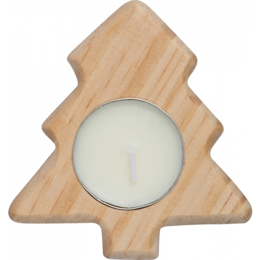 Drewniana podstawka w kształcie choinki ze świeczką tealight.