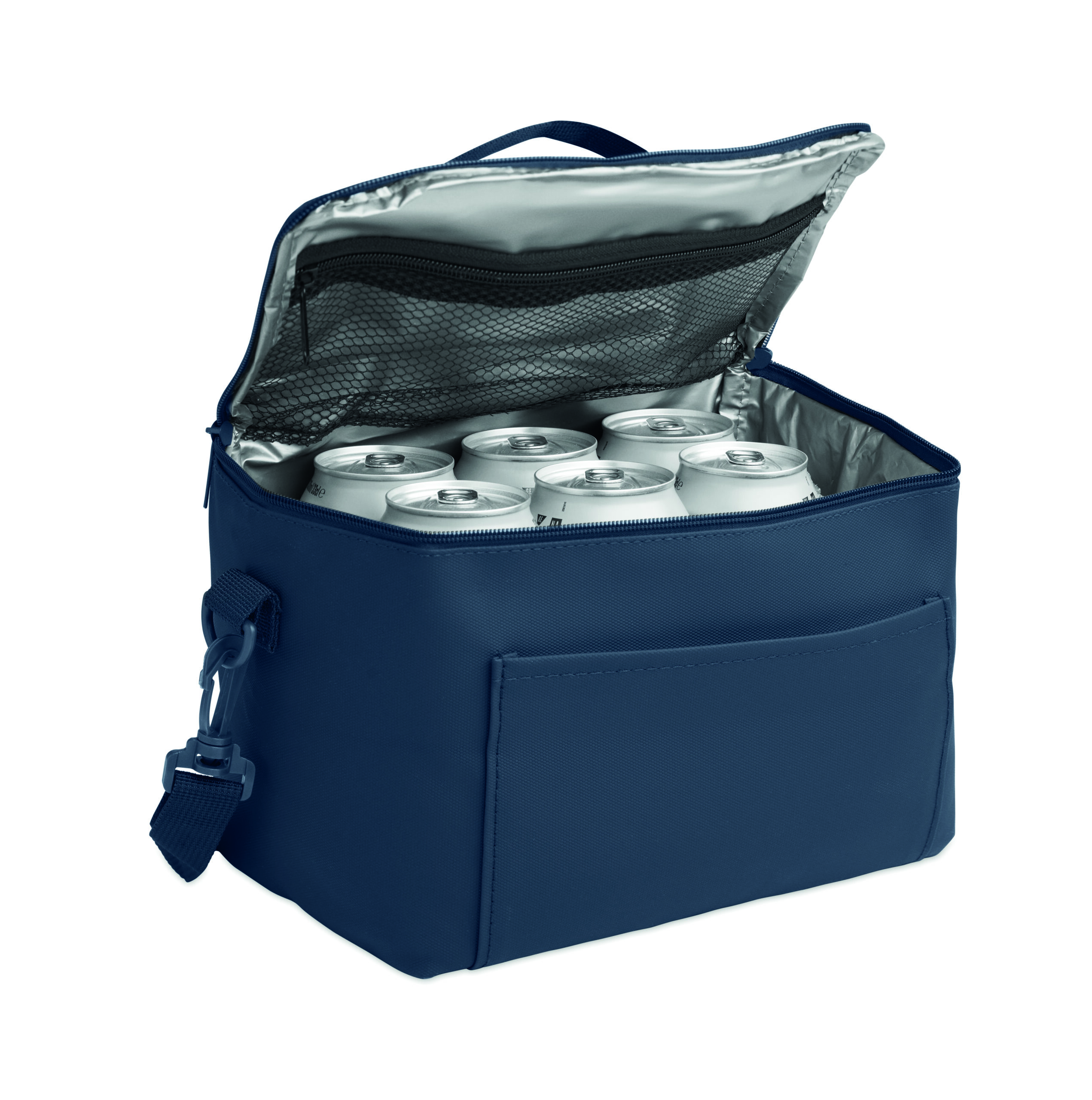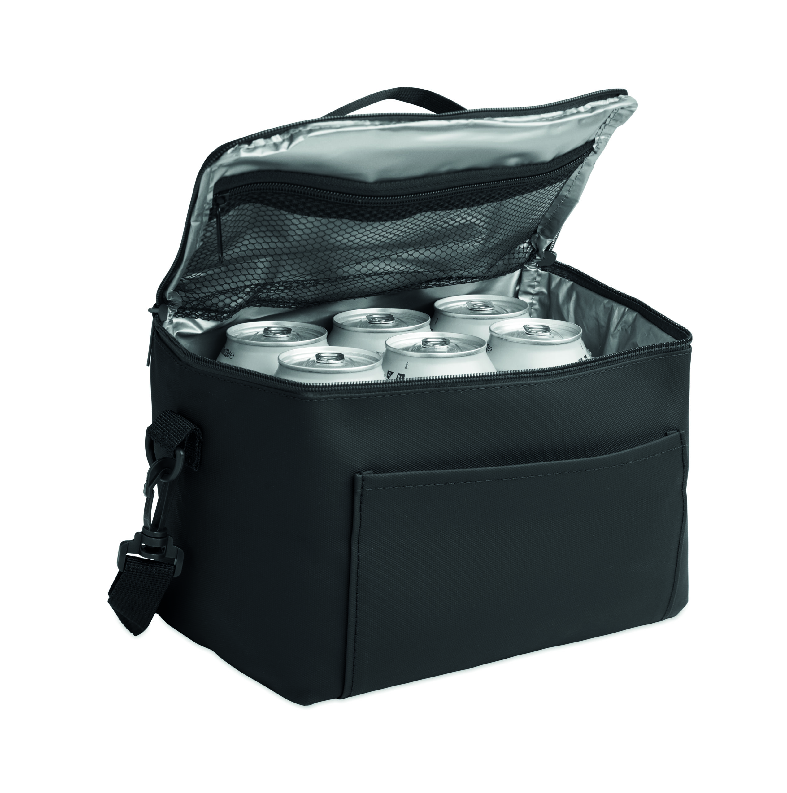 Torba termiczna z PU z podszewką z dzianiny poliestrowej RPET 100g. Zawiera 1 przednią kieszeń, uchwyt i pasek na ramię. Izolująca pianka PE z podszewką PEVA. Pojemność 5,5 l.