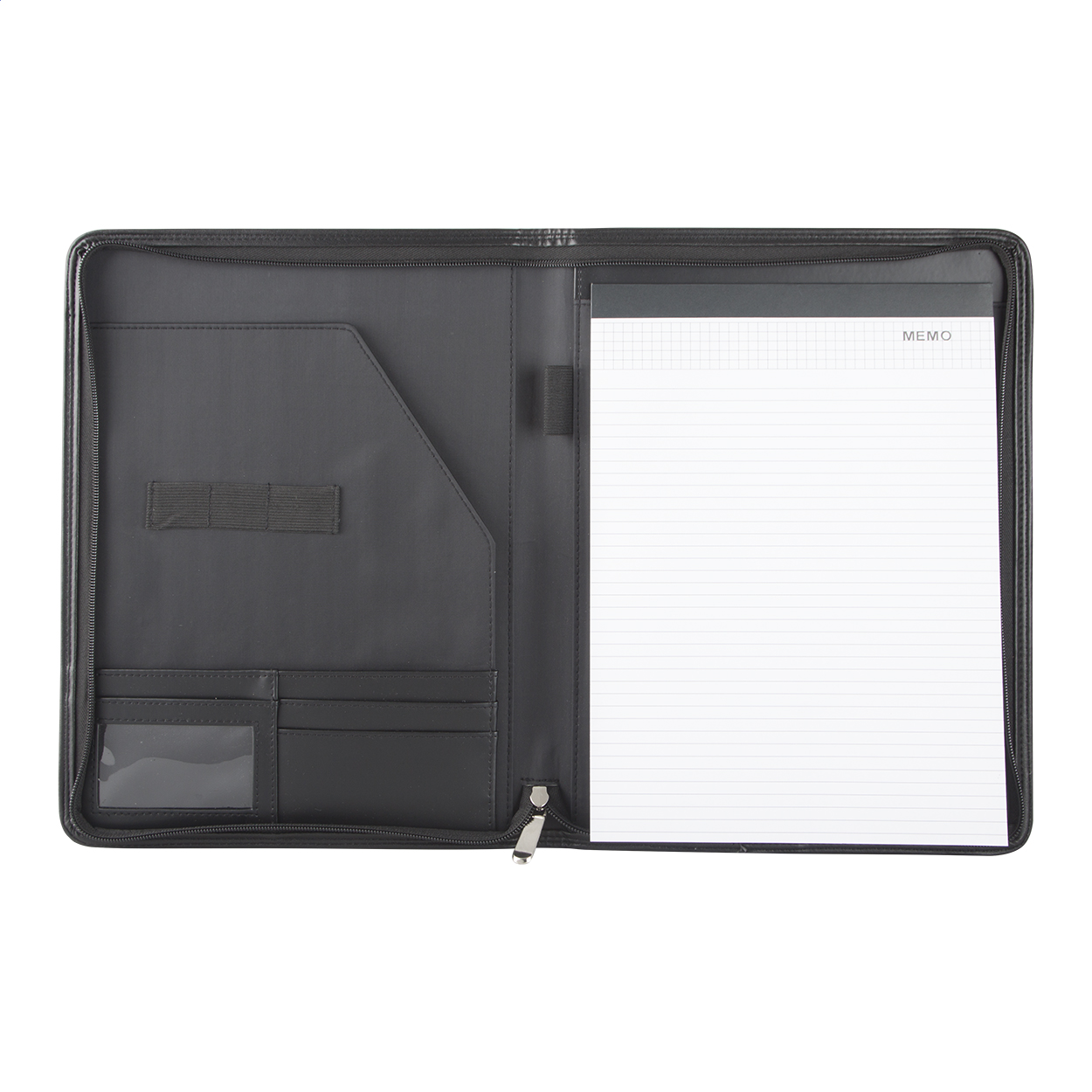 Zapinana teczka na dokumenty A4 ze skóry PU, z notatnikiem z 20 kartkami w linie oraz miejscem na długopis i wizytówki.