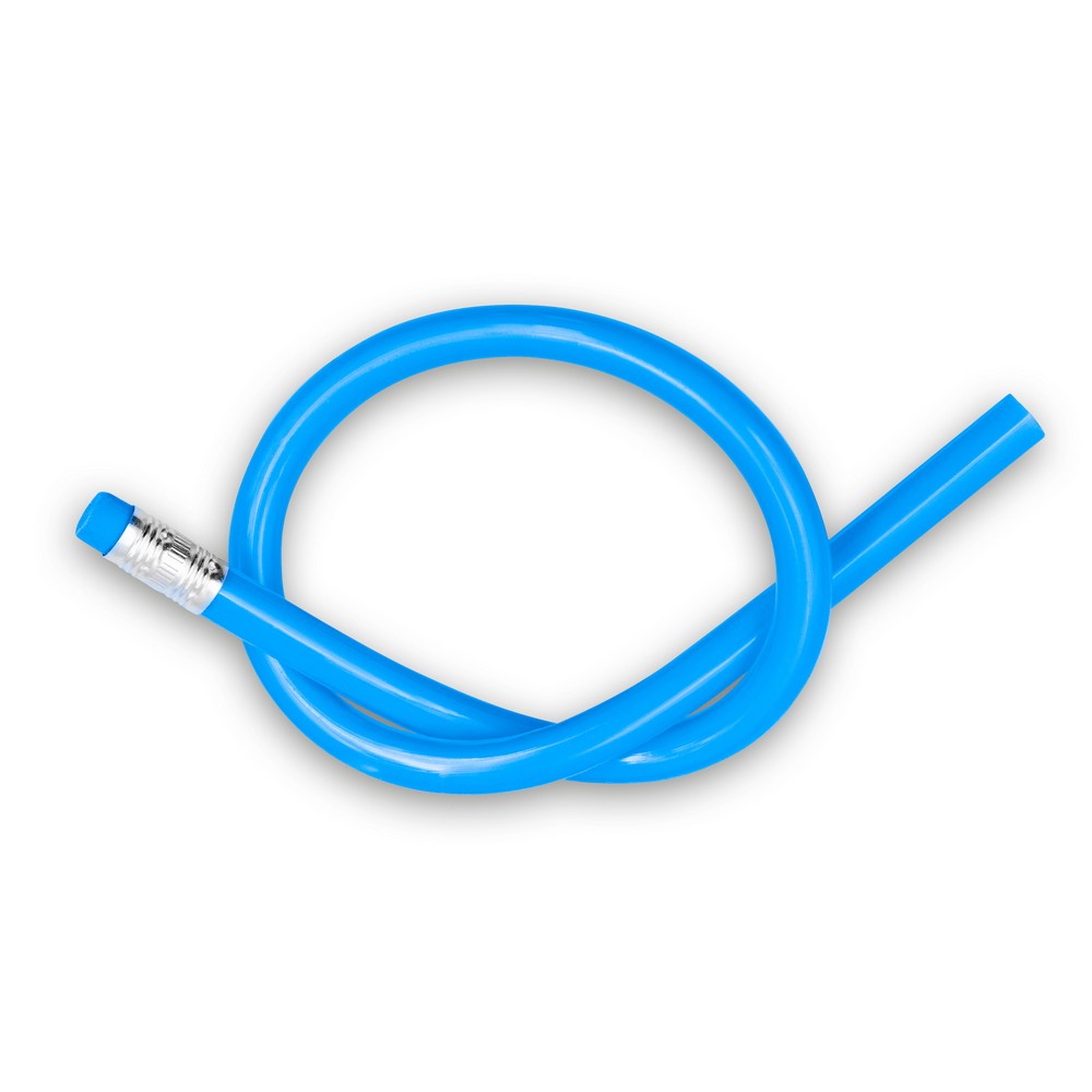 Długi, elastyczny ołówek z błyszczącym wykończeniem i dopasowaną kolorystycznie gumką, giętka budowa odznacza się większą odpornością na złamanie oraz może pomóc w rozładowaniu stresu, końcówka nie jest naostrzona, produkt wykonany z PVC