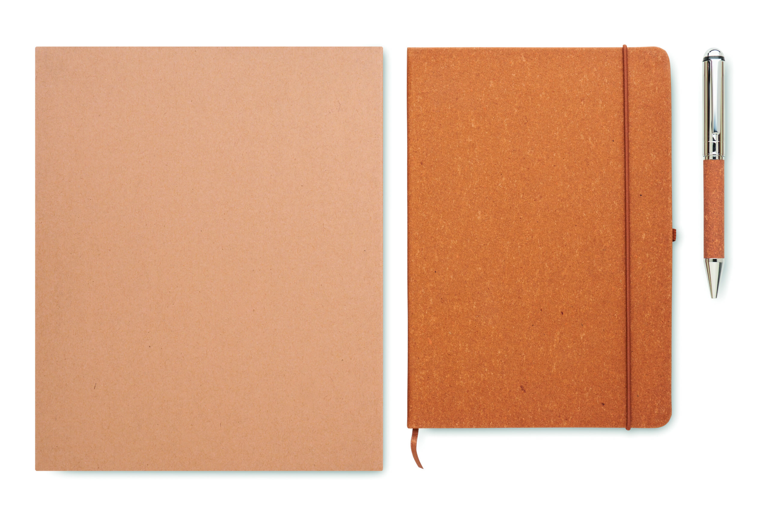 Zestaw upominkowy. Notatnik A5 z twardą okładką, wykonany w 75% ze skóry z recyklingu. Oprawiony. 160 stron w linie (80 kartek)z papieru z recyklingu. Dopasowana gumka zamykająca, wstążkowy znacznik stron i uchwyt na długopis. Dopasowany metalowy długopis. Niebieski tusz. Zapakowany w papierowe pudełko. FSC®-certified | FSC MIX CREDIT, P7.1, FSC-C213206