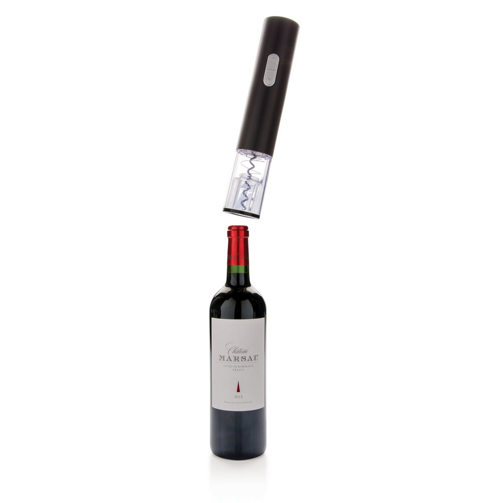 Korkociąg elektryczny, otwieranie butelki za pomocą jednego przycisku, 4 baterie AA w komplecie, w ozdobnym pudełku, ślad węglowy produktu: 2,42 kg CO2