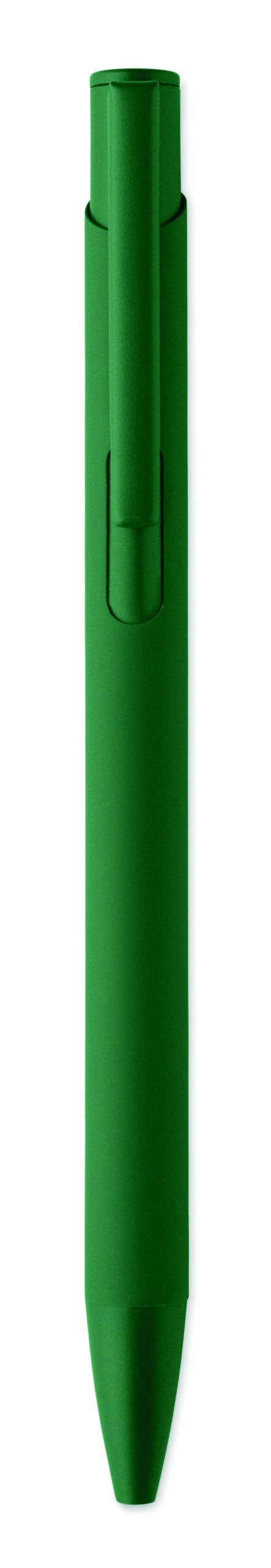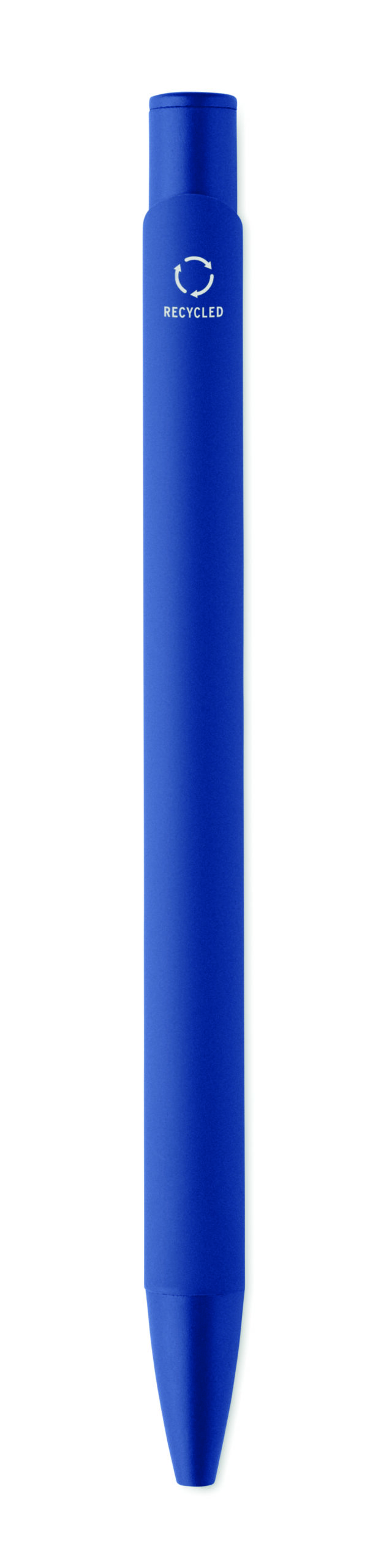 Długopis wciskany wykonany z aluminium pochodzącego z recyklingu, z żelaznym klipsem i kolorowym gumowanym korpusem. Niebieski tusz.