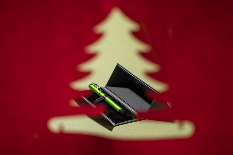 Stylowe etui piśmiennicze w unikalnym trójkątnym kształcie z magnetycznym zapięciem. Wnętrze wyłożone miękką, welurową poduszką, która zapewnia delikatną ochronę dla Twoich ulubionych przyborów do pisania. Dodatkowo wyposażone w praktyczną tasiemkę na długopisy, umożliwiającą łatwe i szybkie wyjęcie artykułów piśmienniczych. Etui pomieści jeden lub maksymalnie dwa długopisy, pióra lub ołówki.Wykonane z ekologicznego papieru, stanowi doskonałą alternatywę dla tradycyjnych etui z materiałów syntetycznych. Idealne zarówno do użytku osobistego, jak i na elegancki prezent.