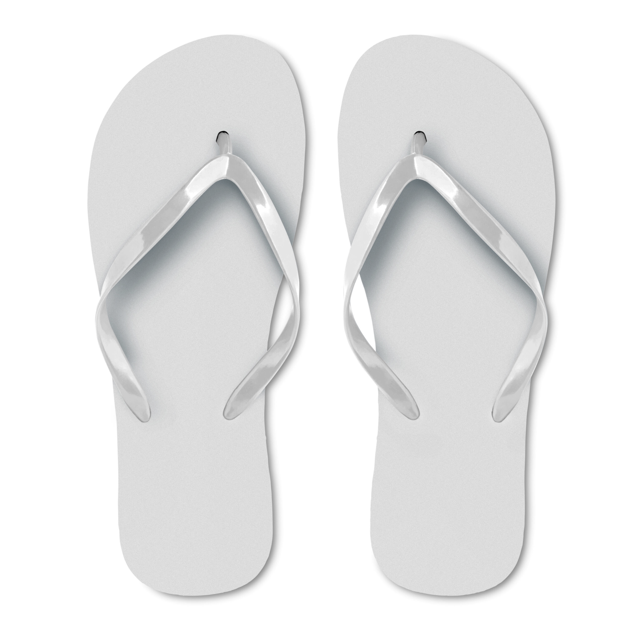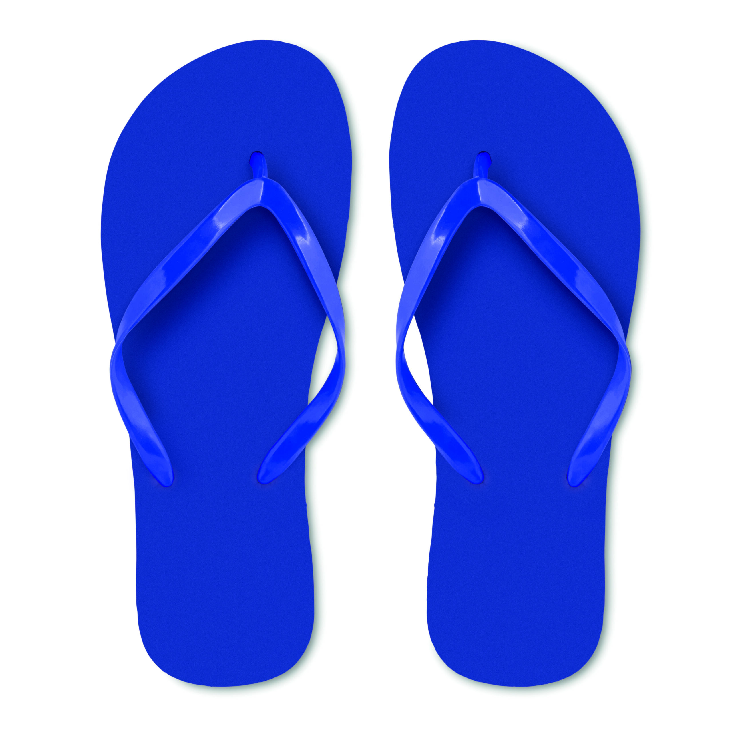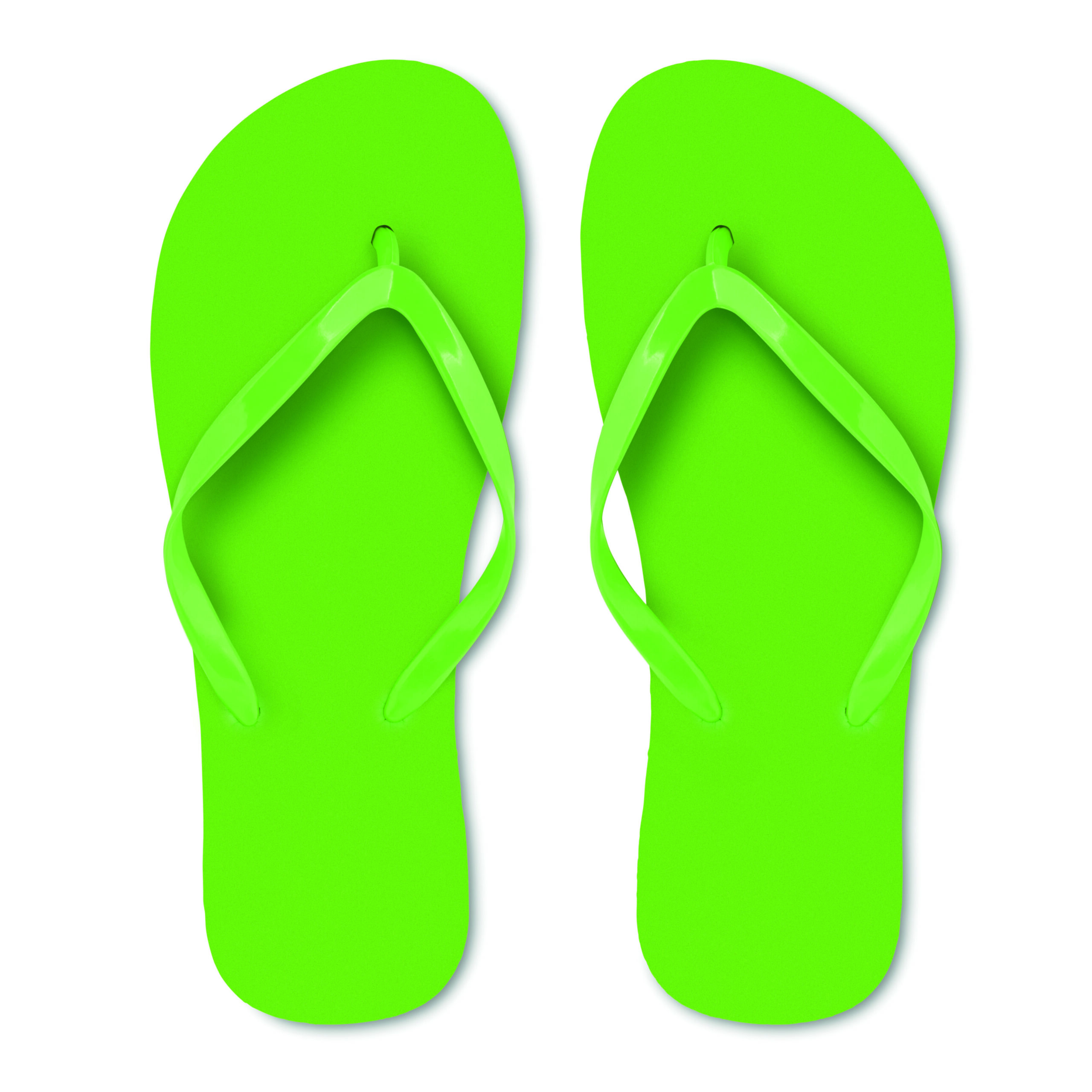 Plażowe japonki z podeszwą z polietylenu i paskiem z PVC. Dostępne w dwóch rozmiarach, M (36-39) i L (40-43).
