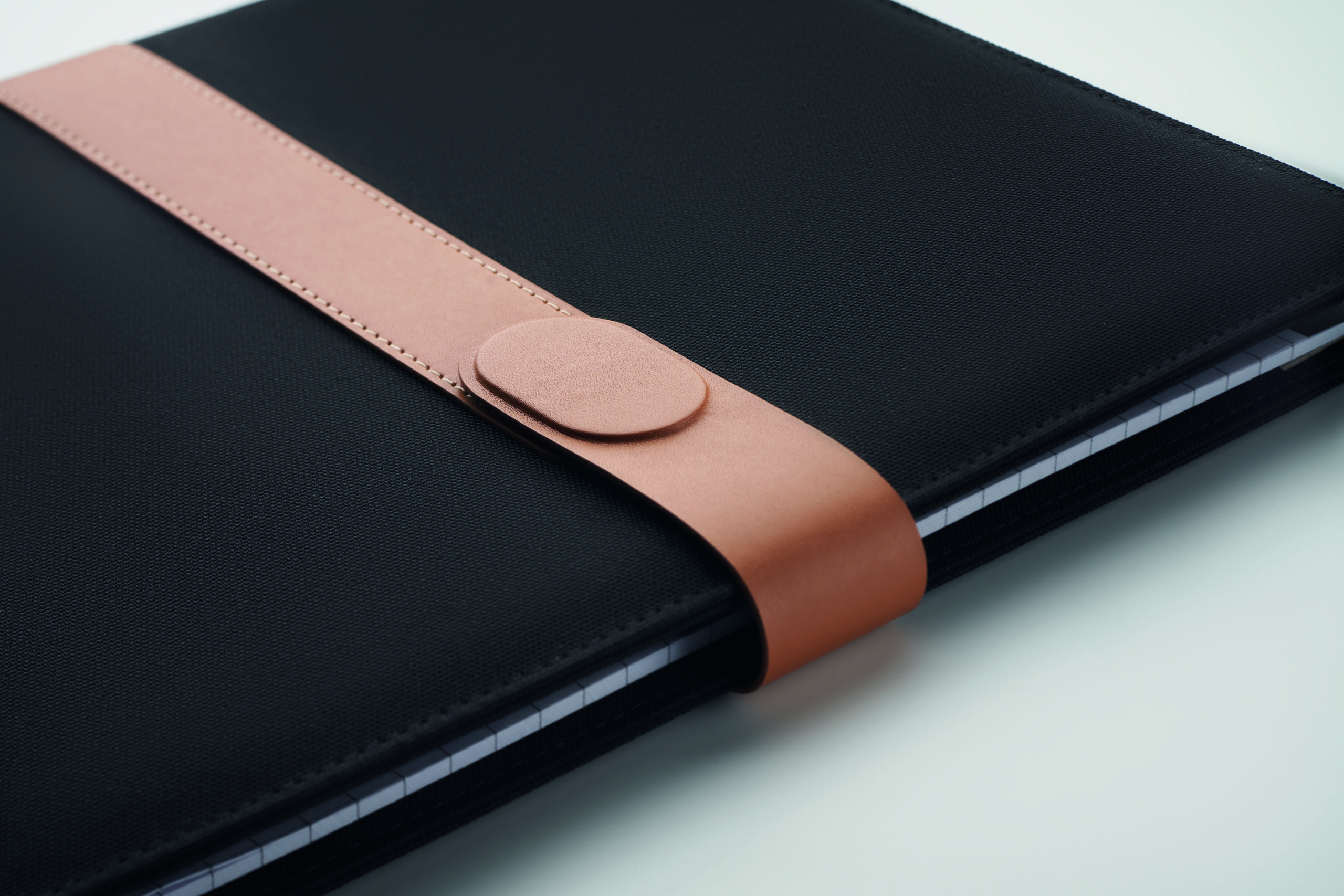 Teczka A4 z RPET z detalami ze sztucznej skóry. Wymienialny notatnik A4. 30 stron w linie z papieru z recyklingu. Uchwyt na długopis. 4 uchwyty na karty, 3 małe kieszenie i jedna duża przegroda. Magnetyczne zapięcie na pasek. FSC®-certified | FSC MIX , P8.6, FSC-C213206