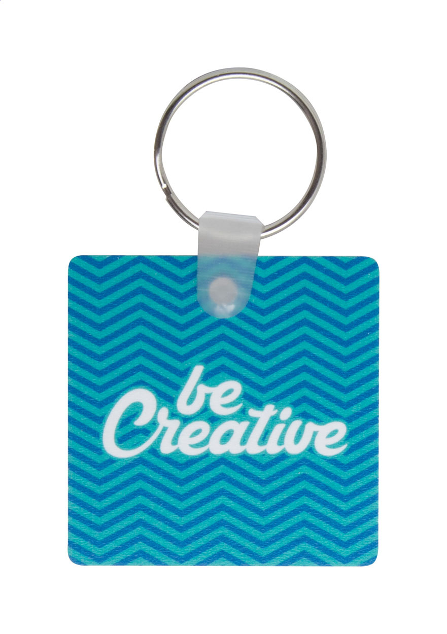 Kwadratowy brelok z pianki PCV z kolorowym nadrukiem. Cena obejmuje druk UV LED. Minimalne zamówienie: 200 szt.