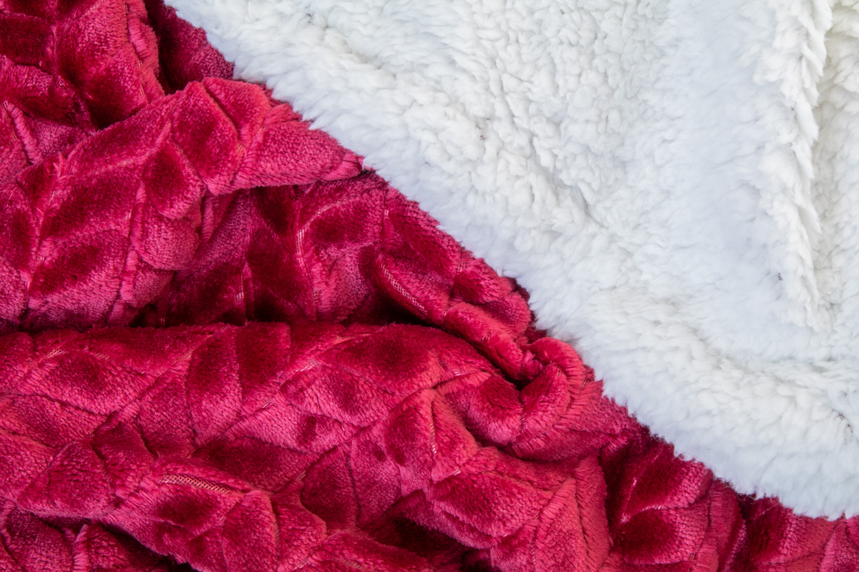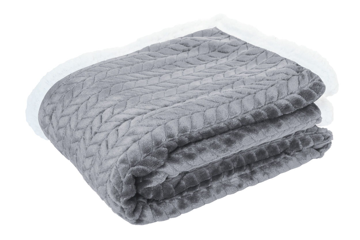 Dwuwarstwowy koc RPET z żakardowym wzorem. Z polarem flanelowym RPET 240 g/m² i podszewką z polaru sherpa RPET 210 g/m². Owinięty wstążką i kartą do nadruku.