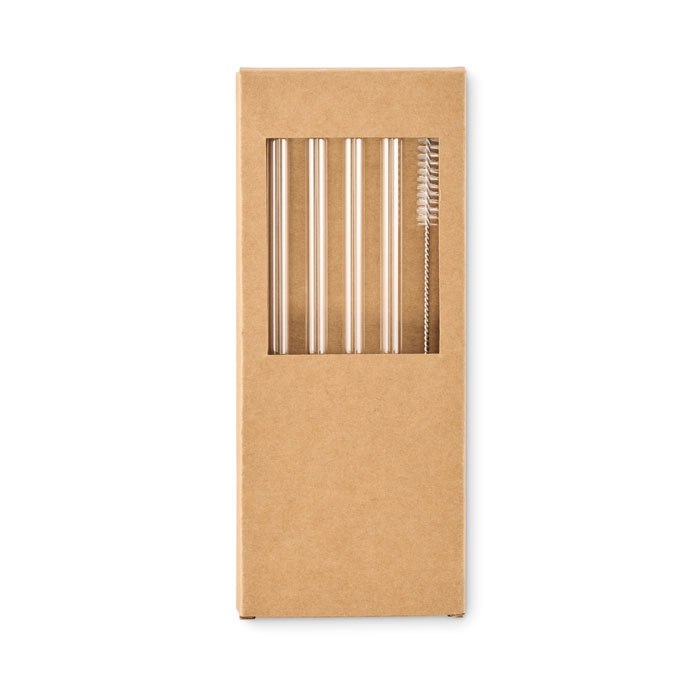 Zestaw 4 słomek wielokrotnego użytku ze szkła borokrzemowego z 1 szczoteczką do czyszczenia.