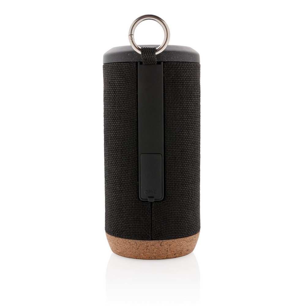 Głośnik bezprzewodowy 10W, BT 4.2, wodoodporny IPX5 (całkowita ochrona przed strumieniem wody płynącej z różnych kierunków z wydajnością do 12,5 litra na minutę), wykonany z wytrzymałej tkaniny, spód z organicznego korka, akumulator o pojemności 2000 mAh umożliwia odtwarzanie muzyki do 6 godzin, zasięg do 10 m, w trosce o środowisko naturalne opakowanie głośnika nie zawiera plastiku, wzór zastrzeżony®, ślad węglowy produktu: 3,13 kg CO2