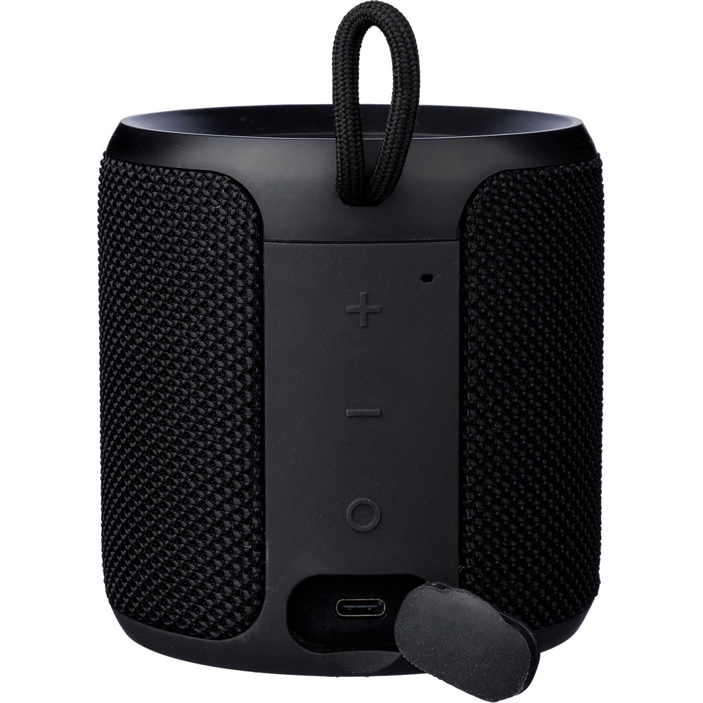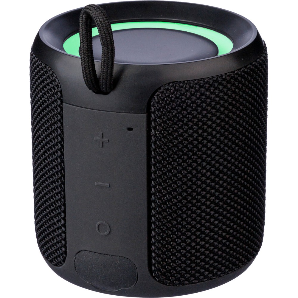 Głośnik bezprzewodowy zmieniający kolor, o mocy 10 W, IPX6 co oznacza ochronę przed strumieniem wody przez 3 minuty, opaska na nadgarstek ułatwiająca noszenie, moc wyjściowa 16 W, wejście DC 5 V, wbudowany akumulator 1200 mAh, działa w odległości 15-20 metrów od źródła sygnału, stosunek sygnału do szumu 75 dB, częstotliwość 100 Hz-15 K Hz, kabel ładujący o długości 30 cm typu C w zestawie, 4 godziny czasu gry, BT 5.1, zapakowany w brązowy kartonik, produkt wykonany z ABS z recyklingu