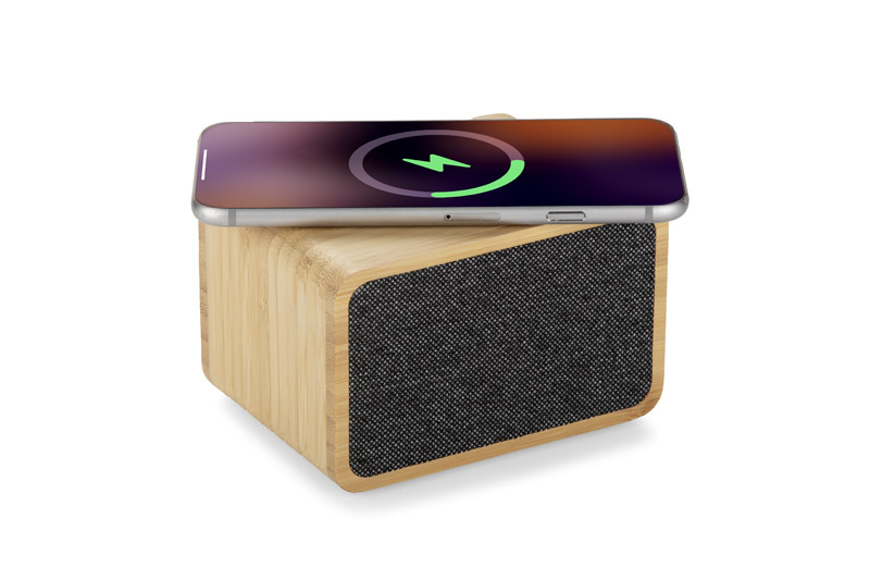 GRANO to bezprzewodowy głośnik o mocy 5W, który łączy funkcję odtwarzania muzyki z możliwością ładowania urządzeń mobilnych w standardzie Qi (15W). Zasilany akumulatorem litowo-jonowym działa bez podłączenia do prądu nawet przez 4 godziny. Wbudowany moduł Bluetooth zapewnia stabilne połączenie z telefonem w zasięgu do 15 metrów. Obudowa z naturalnego bambusa dobrze prezentuje się zarówno na biurku, jak i przy łóżku. Urządzenie ładowane jest przez port USB-C (kabel nie znajduje się w zestawie), a czas pełnego ładowania to ok. 90 minut.