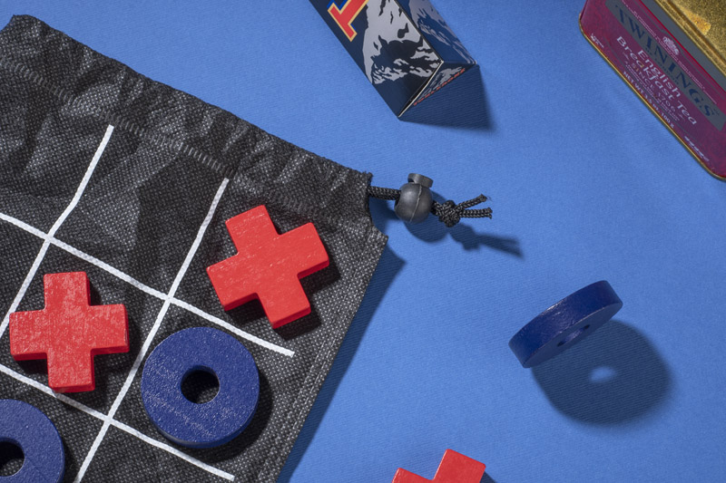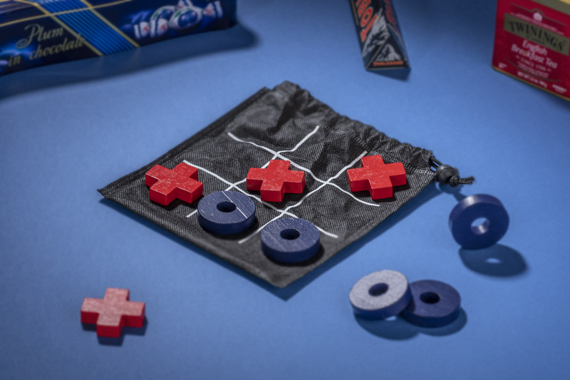 Kółko i krzyżyk to gra logiczna rozgrywana przez dwóch graczy. Zapakowana jest w czarny woreczek na którym znajduje się nadrukowana plansza. Produkt niewielkich rozmiarów, idealny do zabrania w podróż.