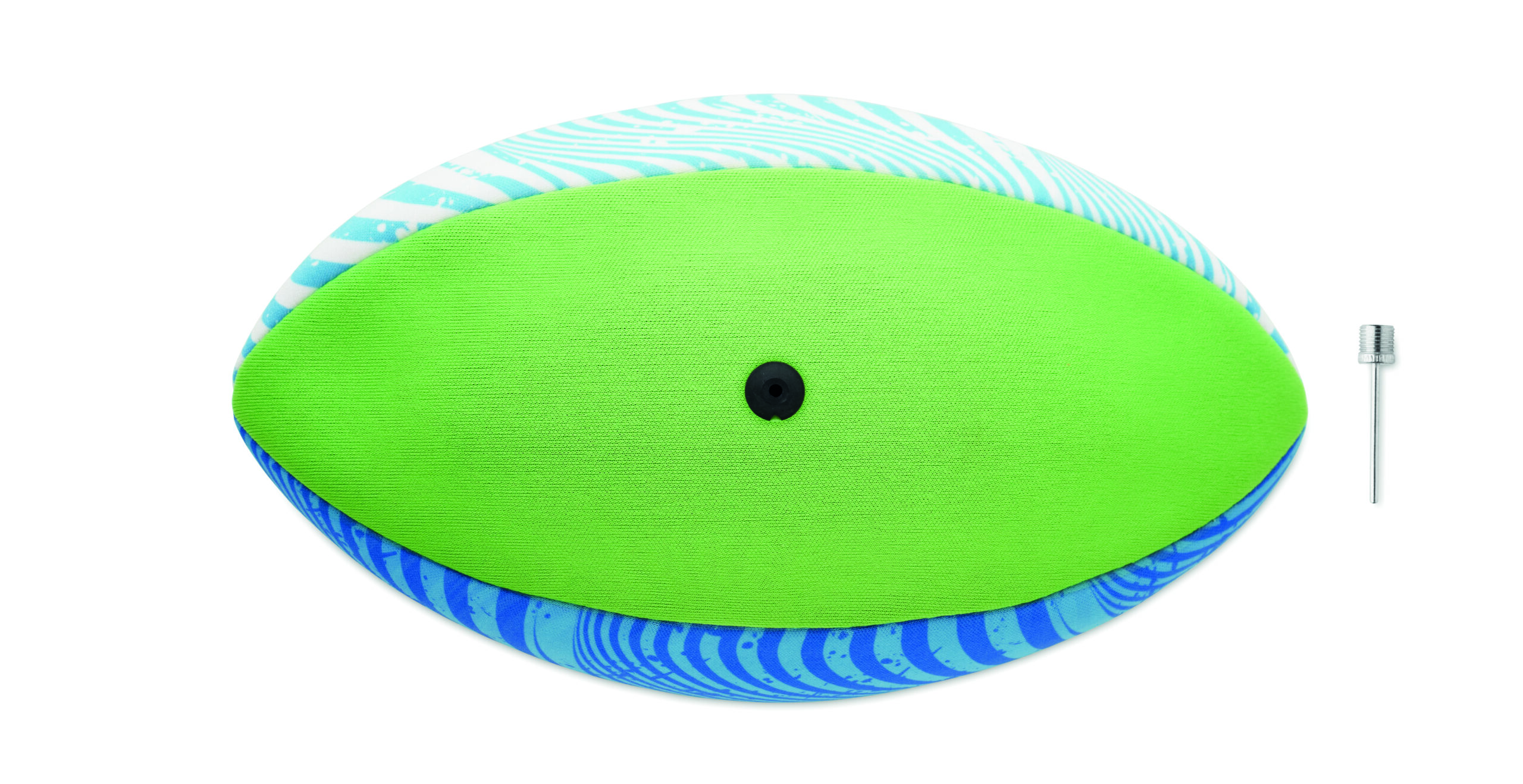 Piłka do rugby wodnego z neoprenu z gumową częścią wewnętrzną. Zawiera igłę.