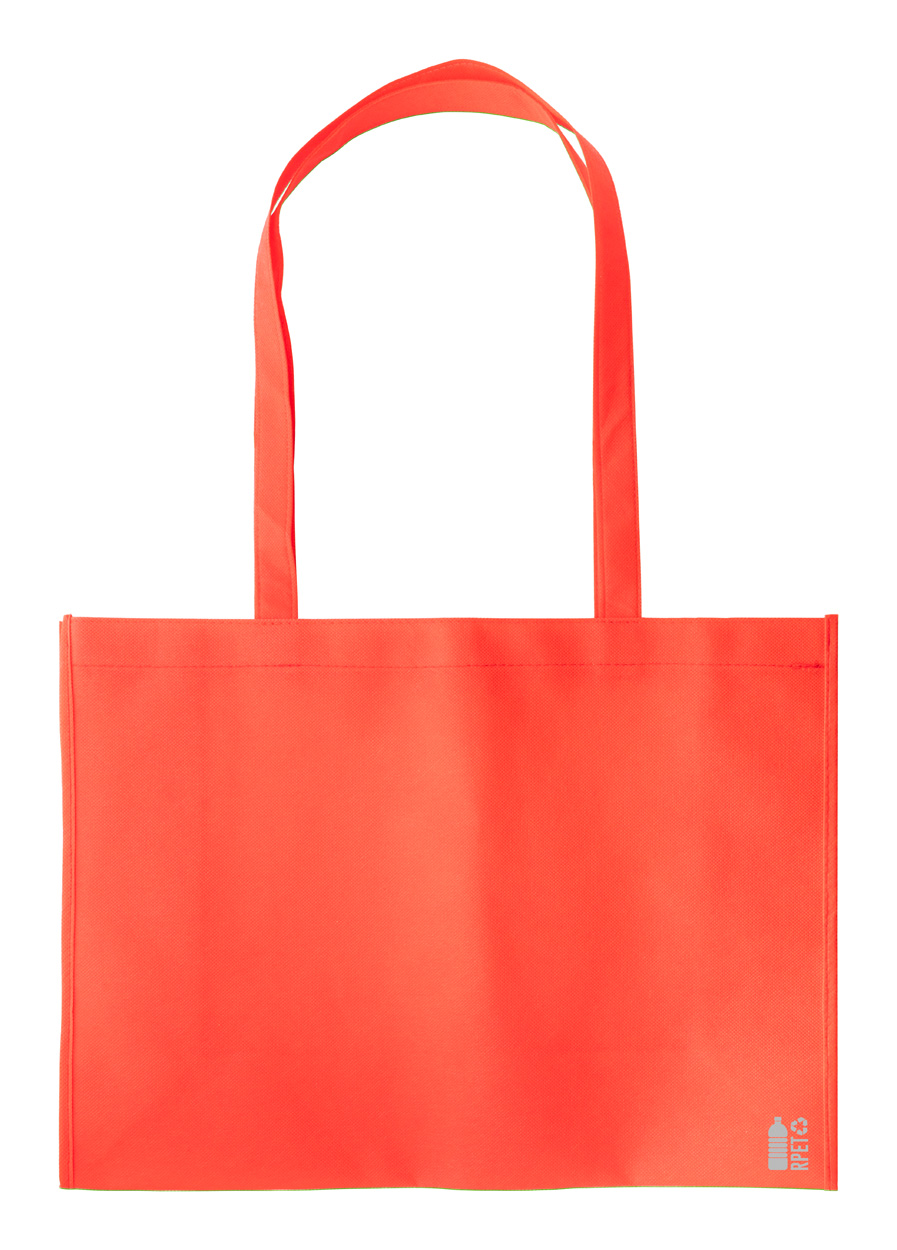 Torba na zakupy z włókniny RPET z klinem i długimi uchwytami, 80 g/m². Z charakterystycznym znakiem RPET.