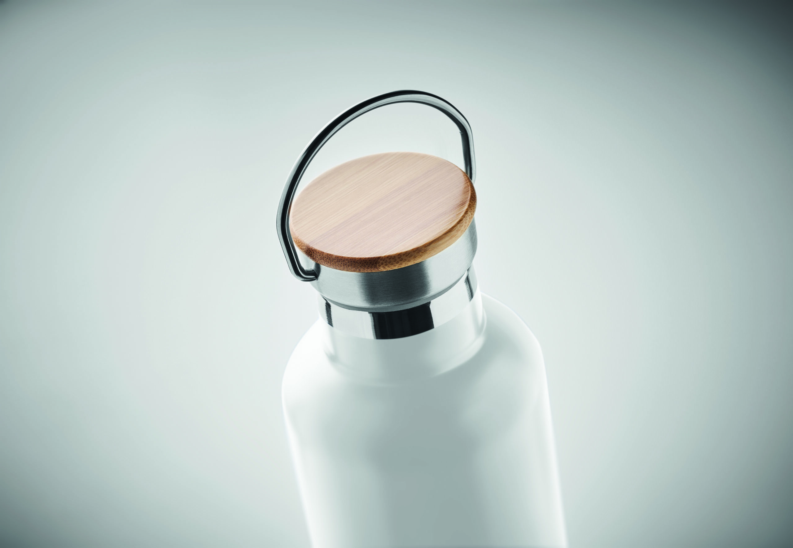 Dwuścienny termos próżniowy z bambusową pokrywą i uchwytem do przenoszenia. Pojemność: 1L. Bambus jest produktem naturalnym, dlatego mogą wystąpić nieznaczne różnice w kolorze, wzorze i rozmiarze.