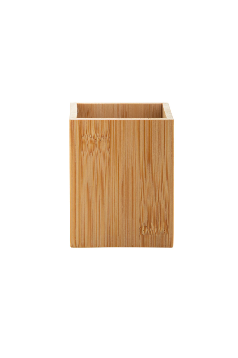 Bambusowy uchwyt na długopis z wielofunkcyjnym zegarem cyfrowym. Funkcje: budzik, kalendarz i termometr. Z baterią guzikową.