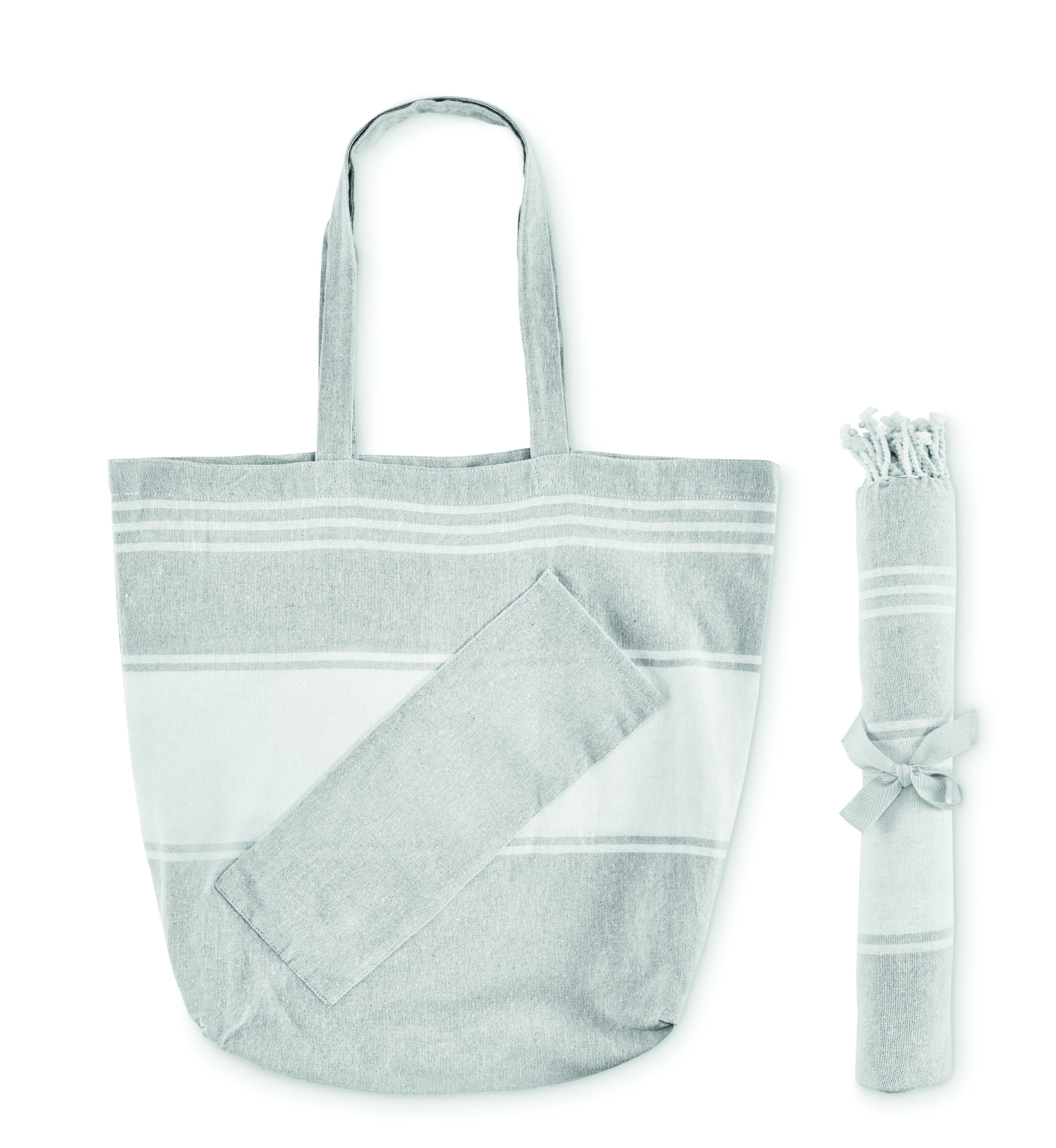 Zestaw ręcznika plażowego hammam z torbą plażową. 70% bawełna i 30% poliester 180 gr/m².
