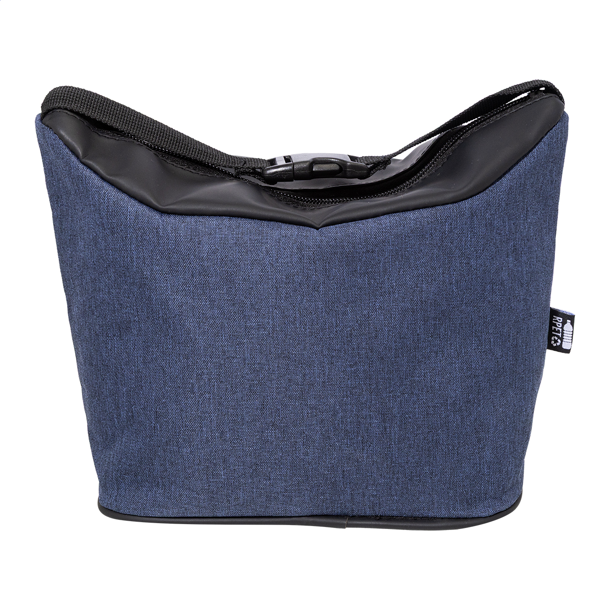 Torba termiczna z poliestru 600D RPET, zapinana na zamek, z detalami z miękkiej, recyklingowanej skóry PU, aluminiową wyściółką i paskiem z klamrą. Z charakterystyczną metką RPET.