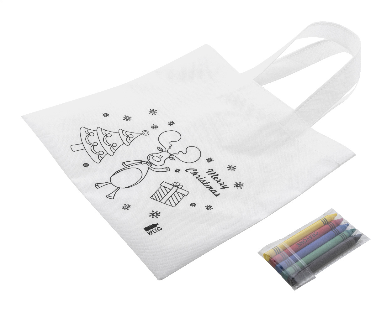 Kolorowanka – torba świąteczna z włókniny RPET z 5 kredkami.