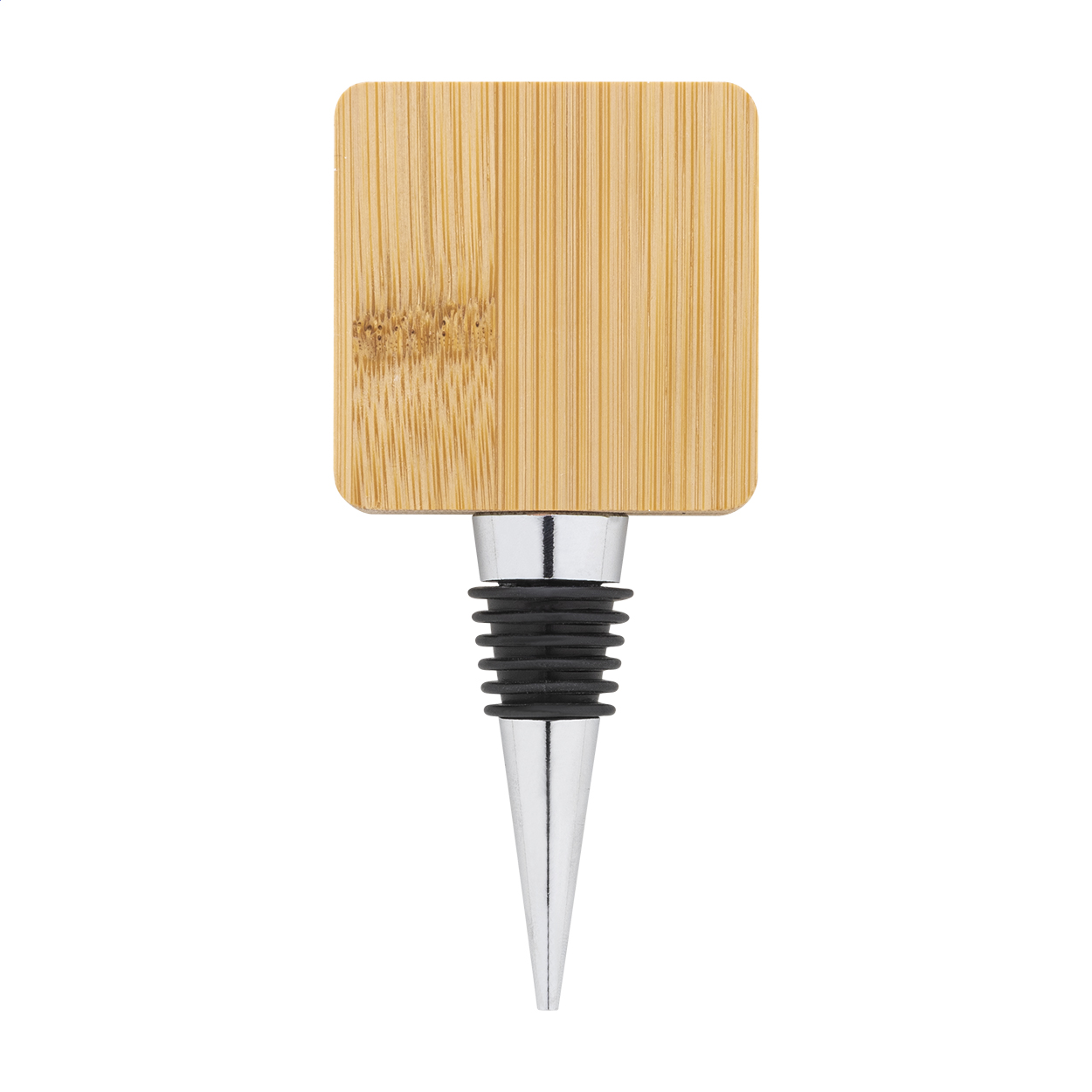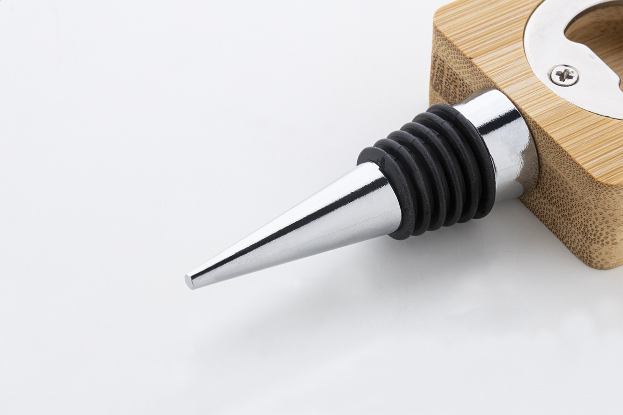 Metalowy korek do wina z kwadratowym otwieraczem do butelek z bambusa.