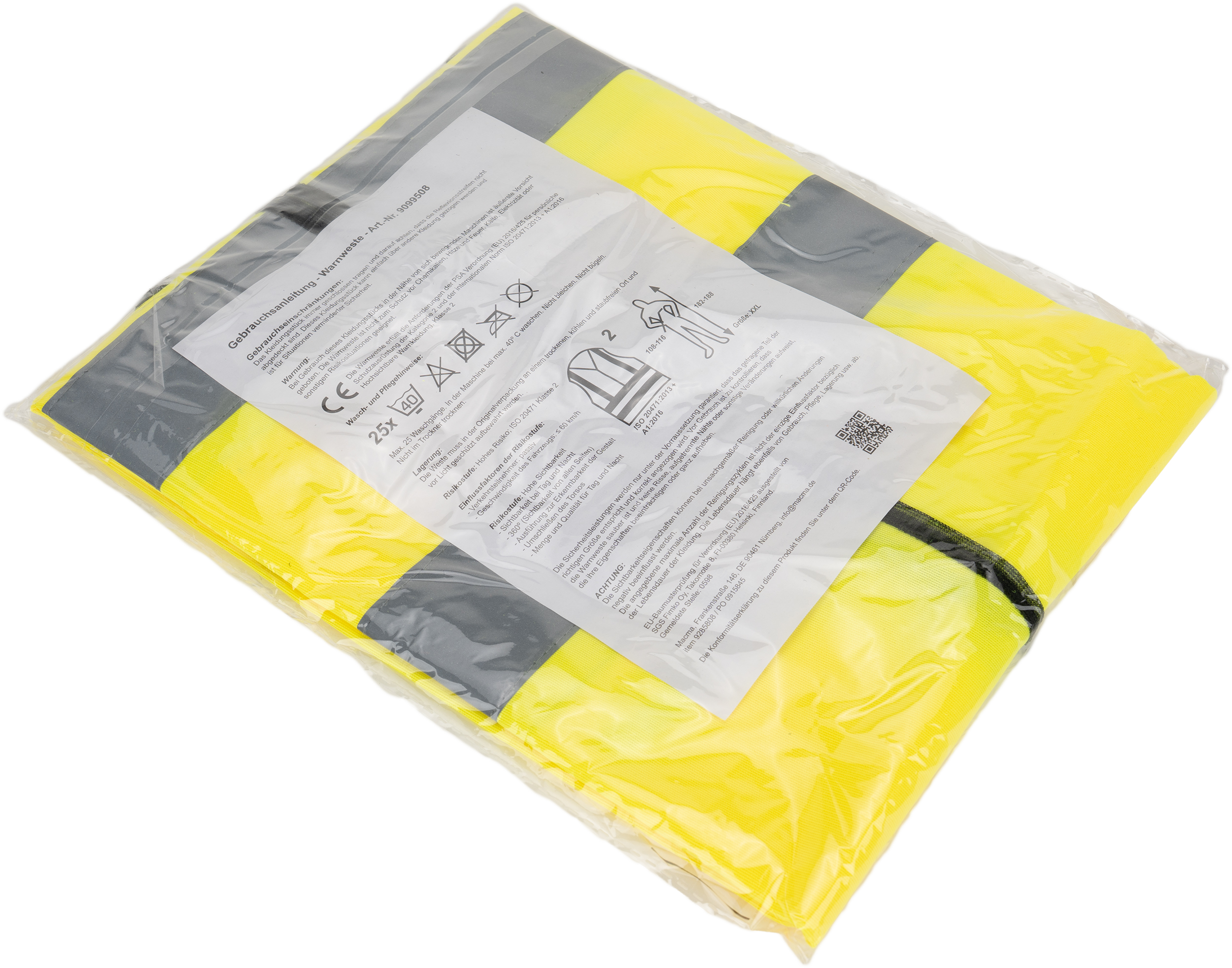 Kamizelka odblaskowa dla dorosłych z odblaskowymi paskami (klasa 2). Wykonana z poliestru. Posiada certyfikat ISO 20471.