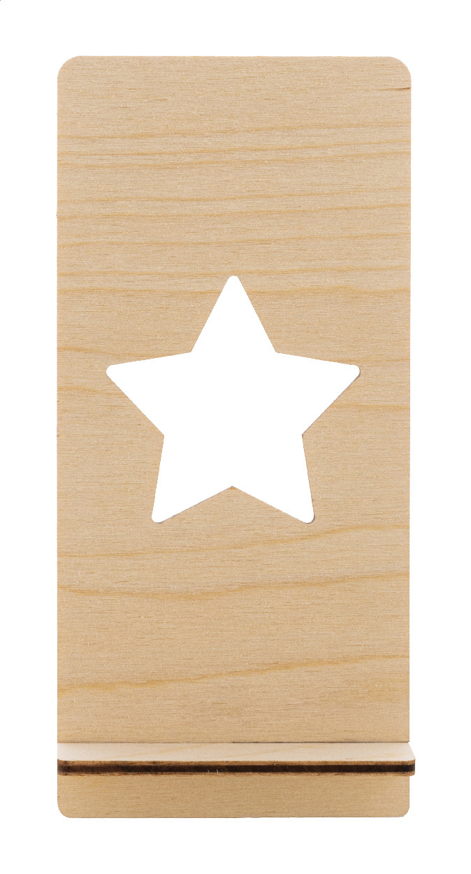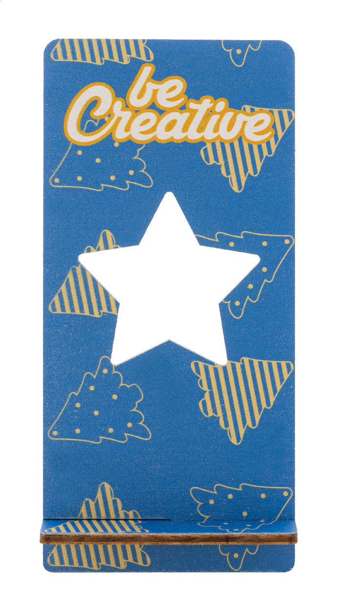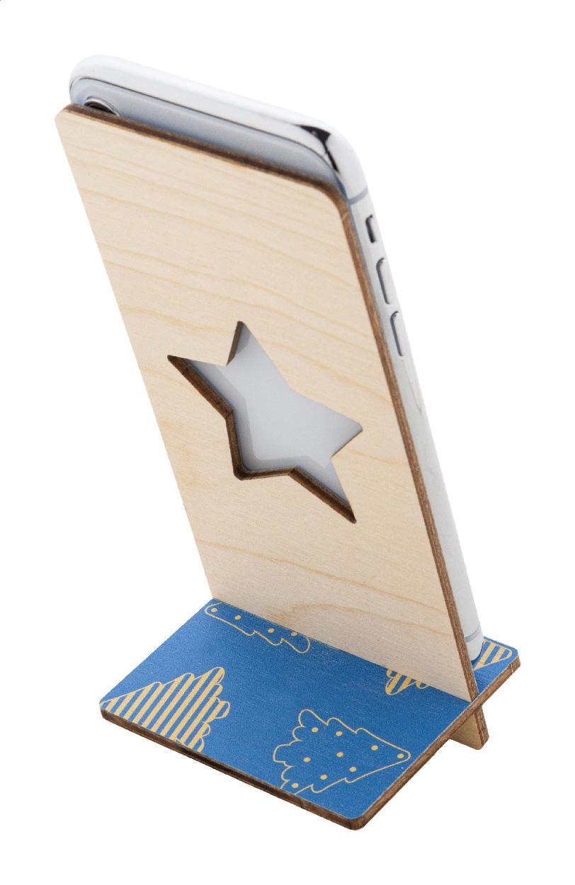 Wykonany na zamówienie, kolorowy uchwyt na telefon komórkowy na biurko, wykonany ze sklejki brzozowej, z wyciętym motywem świątecznym. Cena zawiera nadruk UV LED z przodu. Dostarczany na płasko. Min. ilość: 50 sztuk.