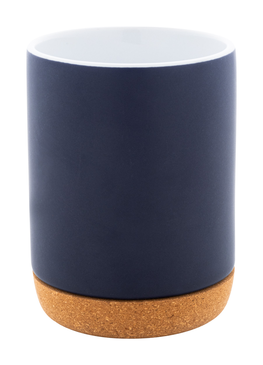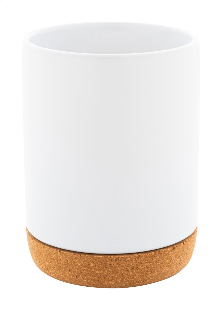 Kubek ceramiczny wysokiej jakości z podstawą z naturalnego korka. Z matowym wykończeniem na zewnątrz i błyszczącym wewnątrz. 280 ml. W pudełku z papieru kraft.