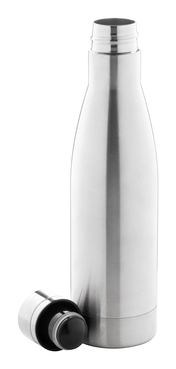 Butelka próżniowa o podwójnych ściankach ze stali nierdzewnej, izolowana miedzią, 500 ml. Izolacja miedziana utrzymuje temperaturę napojów gorących przez 12 godzin i zimnych przez 24 godziny.
