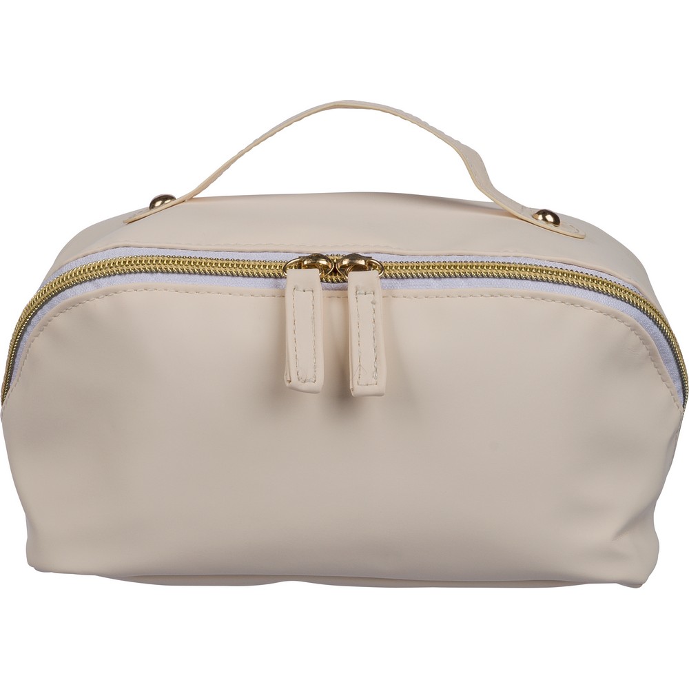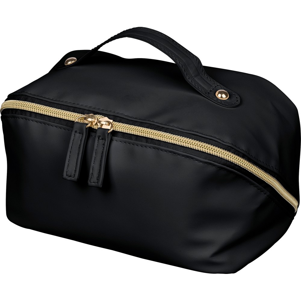 Kosmetyczka zapinana na zamek, krótki uchwyt do noszenia, podszewka z poliestru 210D w środku, duża kieszeń zapinana na zamek, w środku mała kieszeń zapinana na zamek ikona recyklingu na metce, produkt wykonany z PU z recyklingu i poliestru