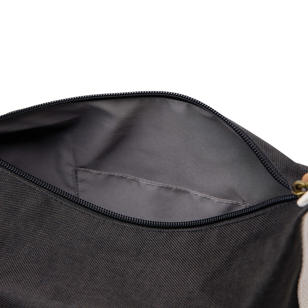 Kosmetyczka, przestronna przegroda główna, wykonana z materiałów z recyklignu, całkowita zawartość materiałów z recyklingu obliczona w oparciu o wagę całkowitą przedmiotu: 24%