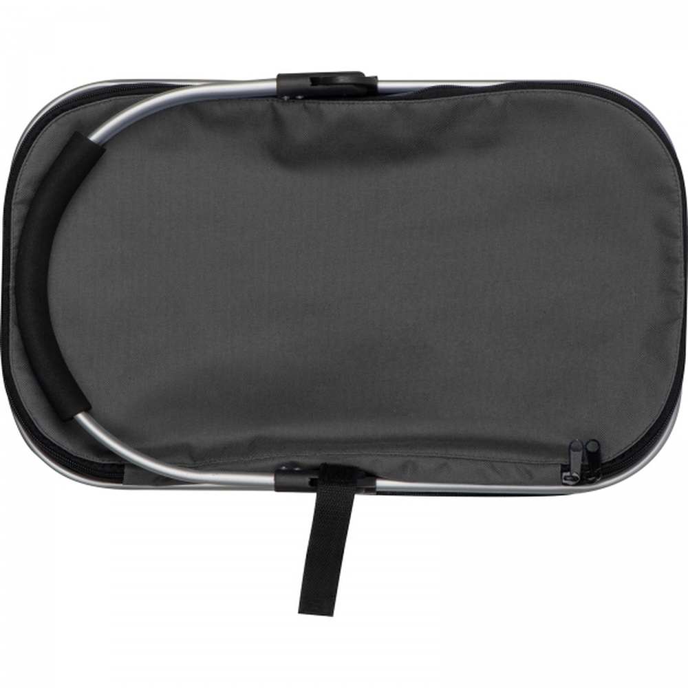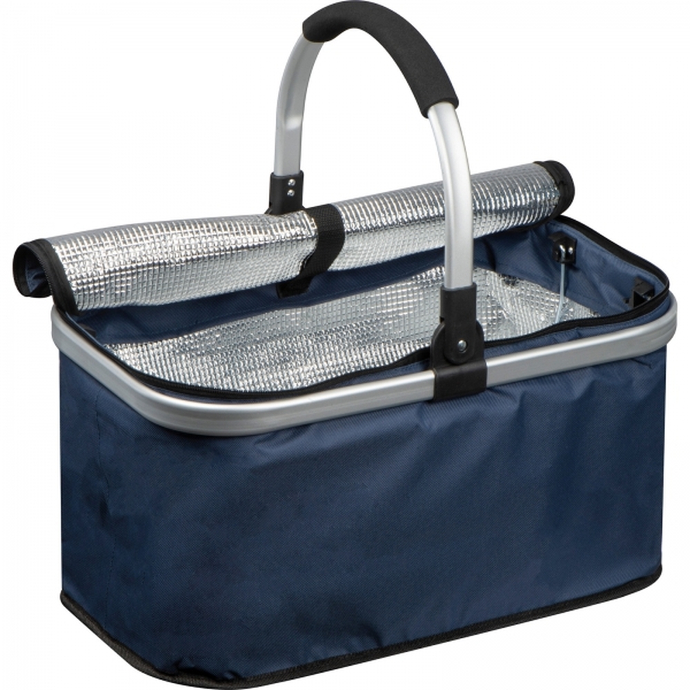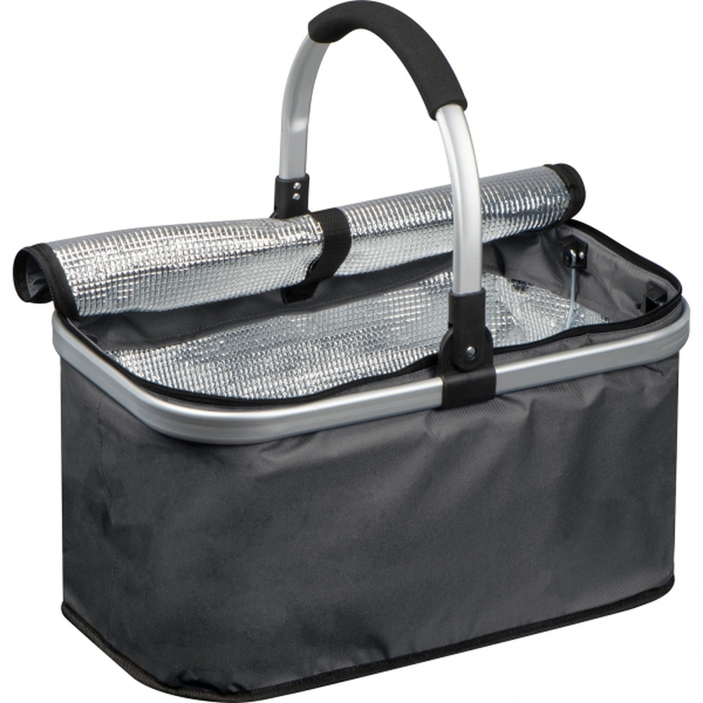 Koszyk na zakupy wykonany z poliestru z rączką z aluminium. Można w nim nosić nawet 15 kg. Warstwa wewnętrzna z materiału termoizolacyjnego utrzymuje temperaturę. Możliwość złożenia aluminiowego uchwytu lub całego koszyka.
