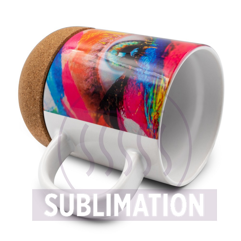 Kubek ceramiczny 370 ml pod sublimację, po zdjęciu korkowej podstawy kubek można myć w zmywarce