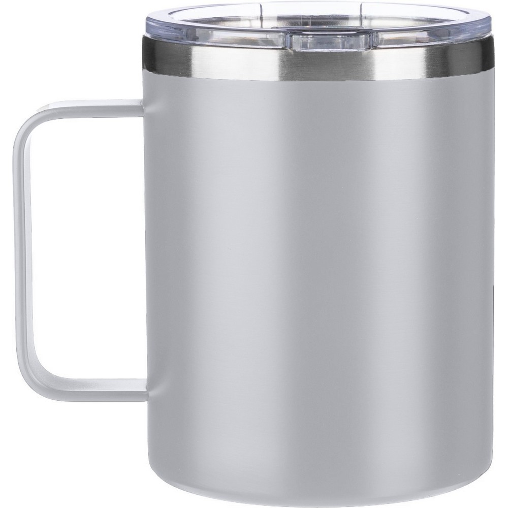 Kubek podróżny 300 ml, z podwójnymi ściankami dzięki którym zewnętrzna strona kubka nie nagrzewa się, matowe wykończenie, wieczko z otworem ułatwiającym picie ulubionego napoju, ikona stali z recyklingu na produkcie, produkt wykonany ze stali nierdzewnej z recyklingu