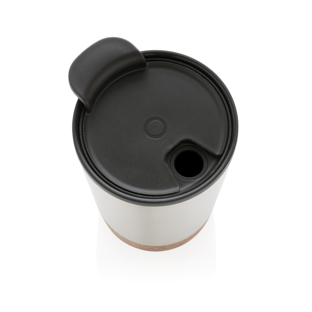 Kubek termiczny 300 ml, podwójne ścianki, wnętrze z PP z recyklingu z certyfikatem GRS, całkowita zawartość materiałów z recyklingu obliczona na podstawie wagi całkowitej produktu: 52%, korkowe elementy na zewnątrz, utrzymuje temperaturę napojów gorących do 4 godzin oraz zimnych do 6 godzin