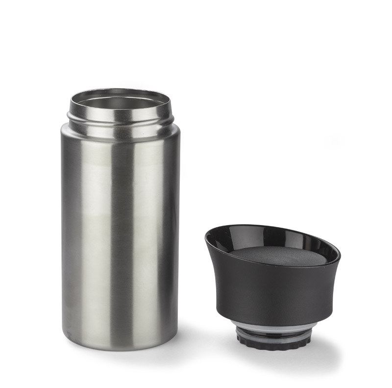 Kubek EDDY jest wykonany ze stali. Posiada bardzo wygodne zamknięcie z tworzywa z systemem click, które zapewnia szczelność i możliwość picia z każdej strony. Wnętrze wykonane ze stali nierdzewnej o podwyższonym standardzie. Pojemność 300 ml sprawia, że nie przytłacza swoim rozmiarem. Utrzymuje temperaturę do 13 godzin.