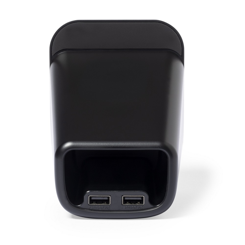 Ładowarka bezprzewodowa 15W, działa z telefonami posiadającymi możliwość ładowania indukcyjnego, 2 wyjścia USB 5V/2A, pojemnik na przybory do pisania, stojak na telefon, grawer ukazuje podświetlaną powierzchnię, antypoślizgowy spód, wejście USB typu C 5-12V/3-1.5A, kabel USB typu C w komplecie