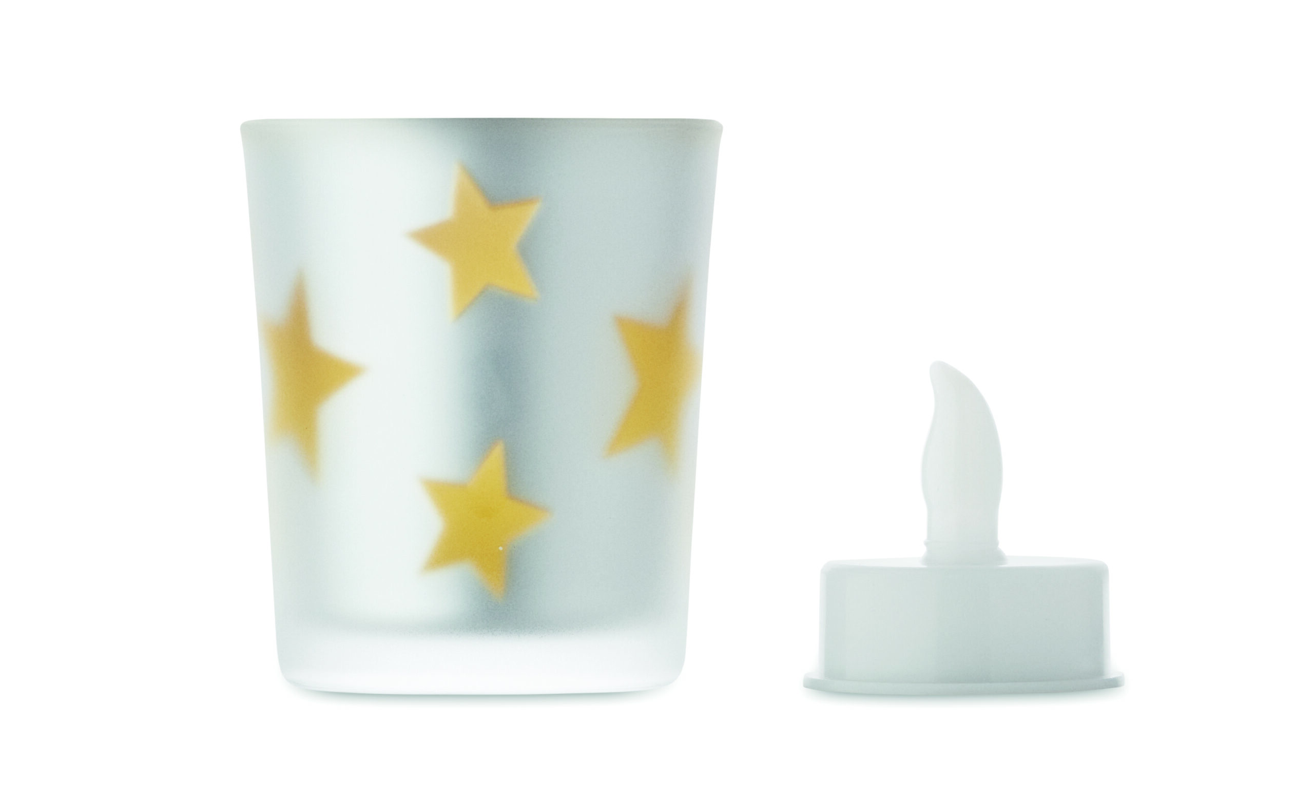 Świeczka LED typu tealight z PP w szklanym słoiku. w zestawie 1 bateria CR2032.