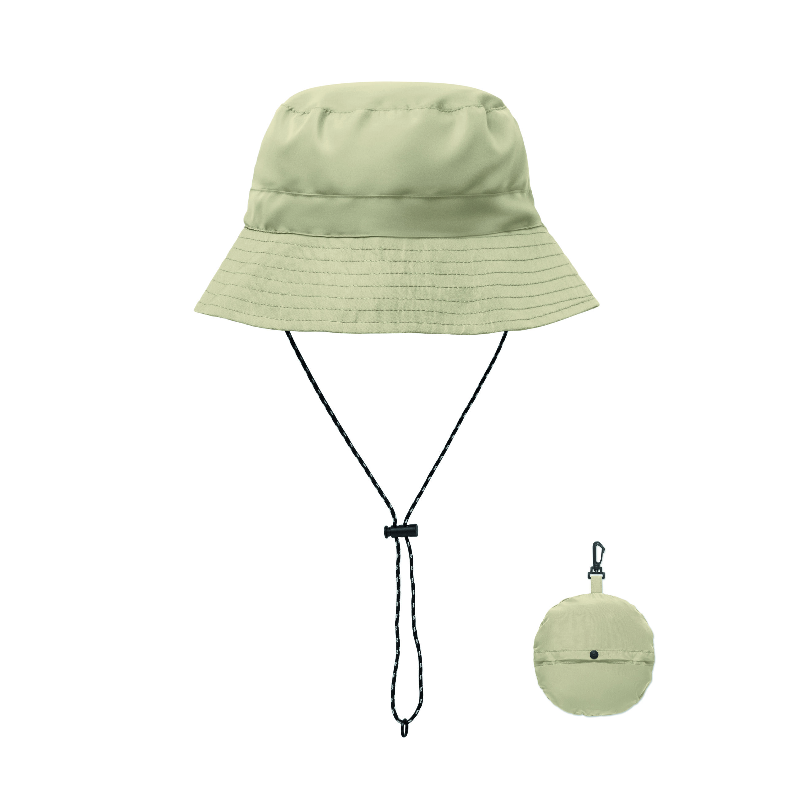 Wodoodporna czapka rybacka wykonana z poliestru, w komplecie materiałowy pokrowiec z karabińczykiem ABS. 64 gr/m².