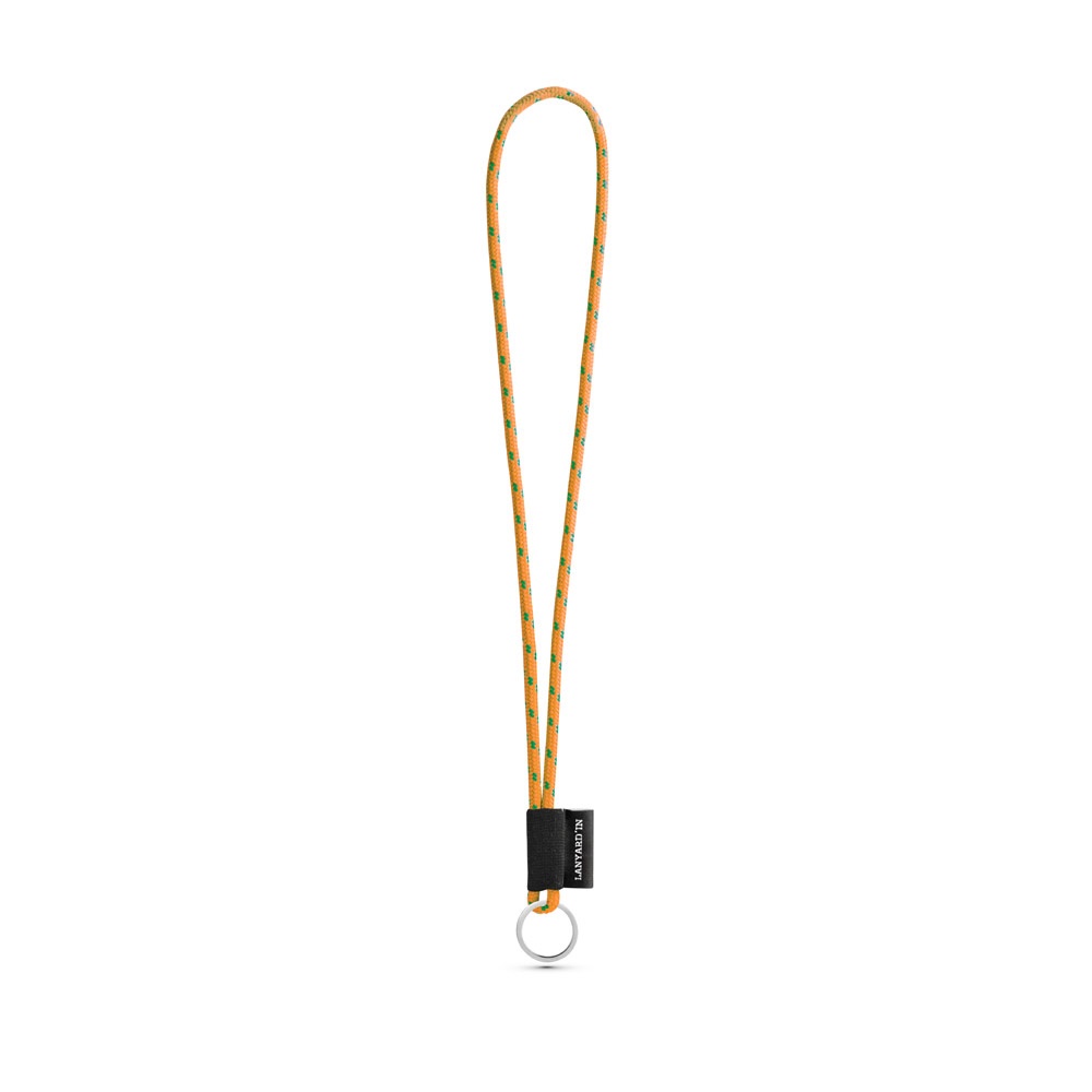 Personalizowana smycz Lanyard, długa smycz sznurkowa wykonana z poliamidu, w 12 standardowych kolorach dostępnych do personalizacji. Zawiera następujące akcesoria i dodatki: czarna gumka, etykieta sublimacyjna 43 x 15 mm i kółka ø32 mm