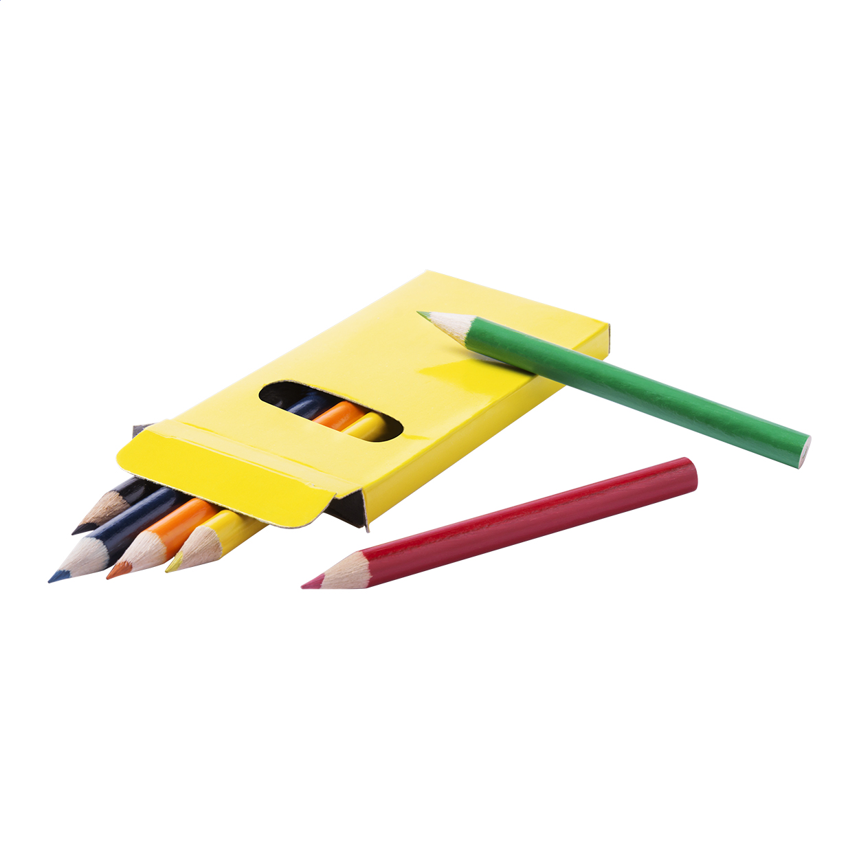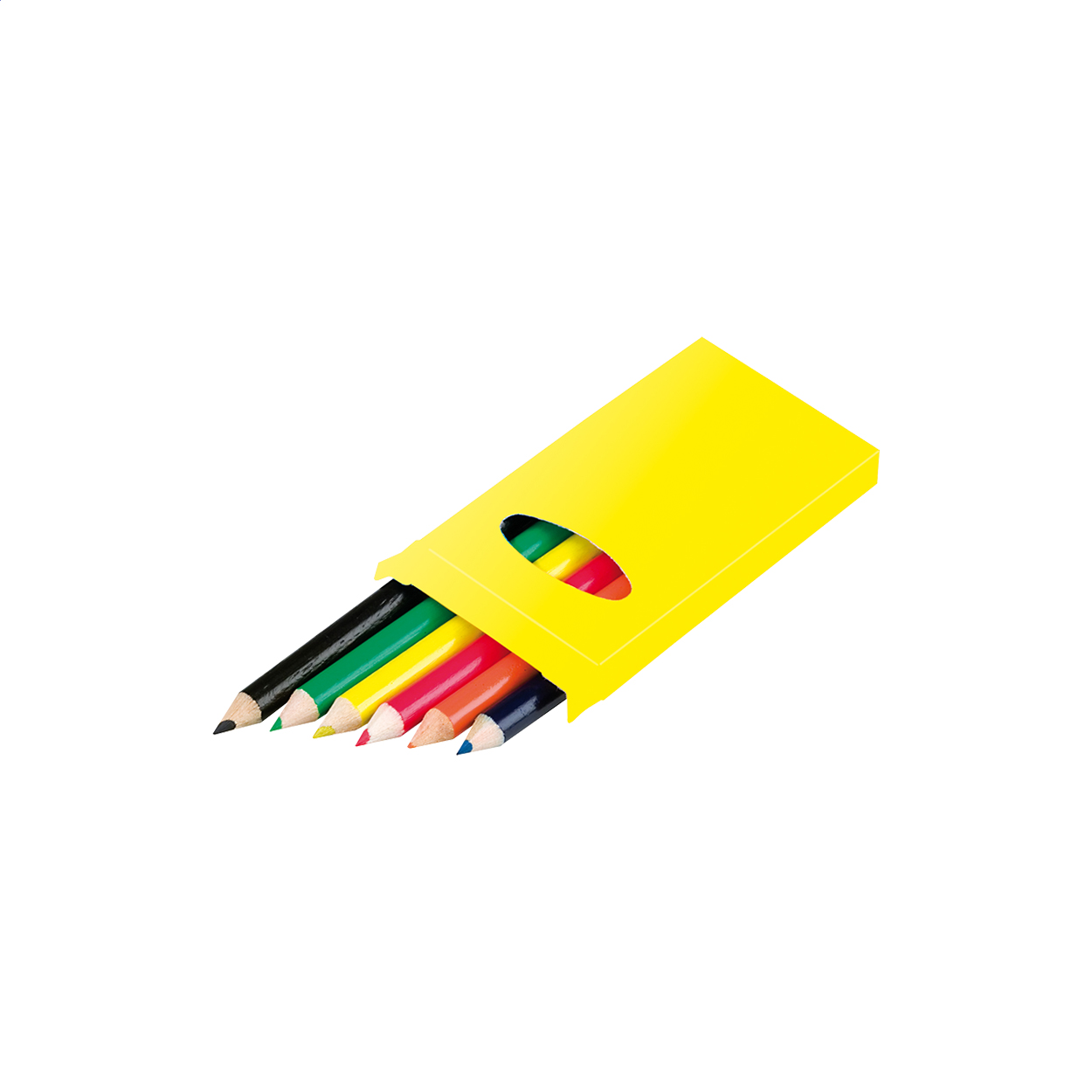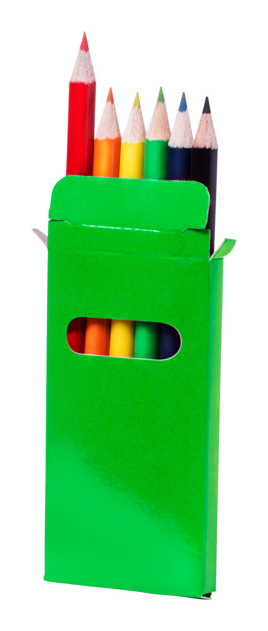 Drewniane, kolorowe kredki (6 szt) w kolorowym papierowym pudełku.