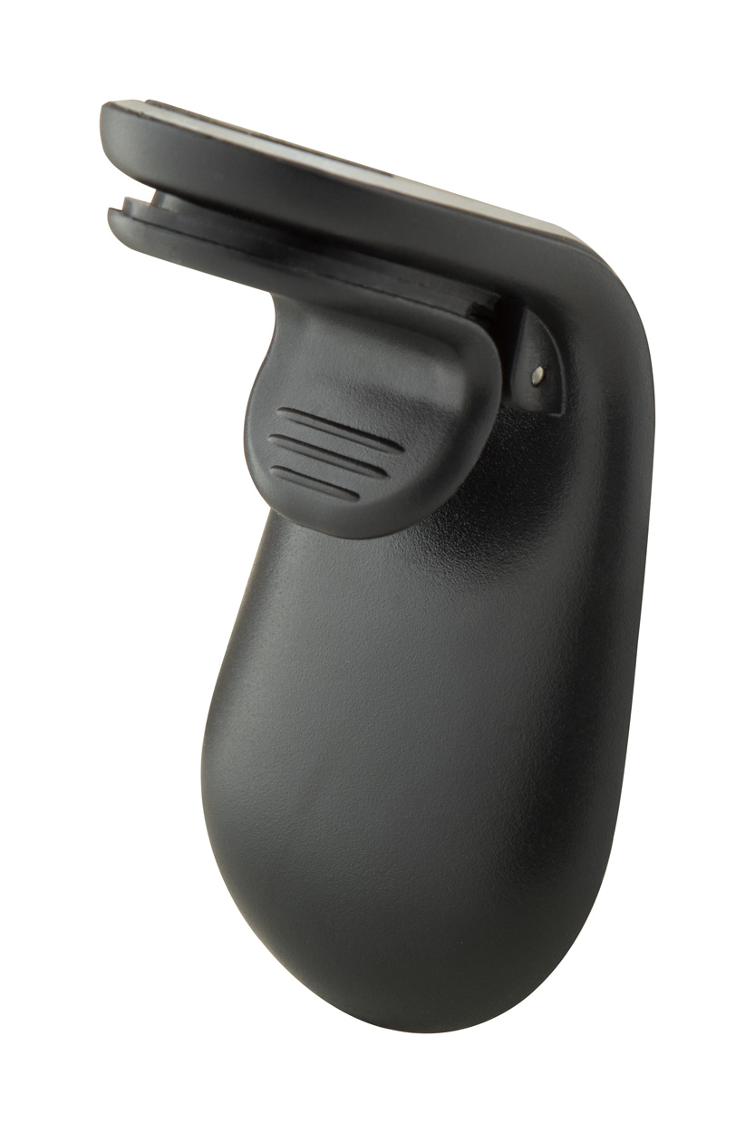 Aluminiowy, magnetyczny uchwyt samochodowy z mocowaniem na kratkę wentylacyjną. W zestawie samoprzylepna metalowa płytka.
