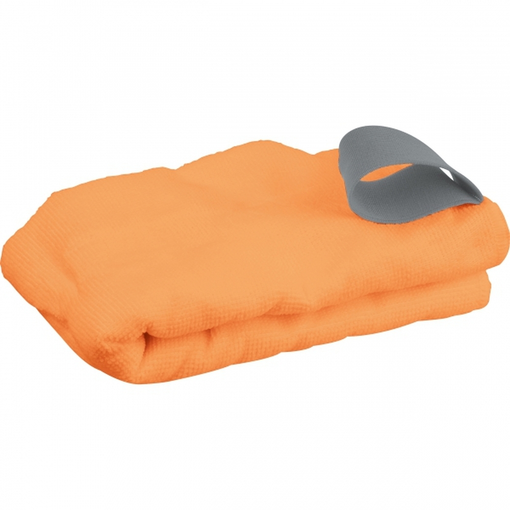 Mały ręcznik (90 x 40 cm), wykonany z mikrofibry o gramaturze 160 g/m², z wszytą gumką, dzięki której można łatwo złożyć ręcznik.