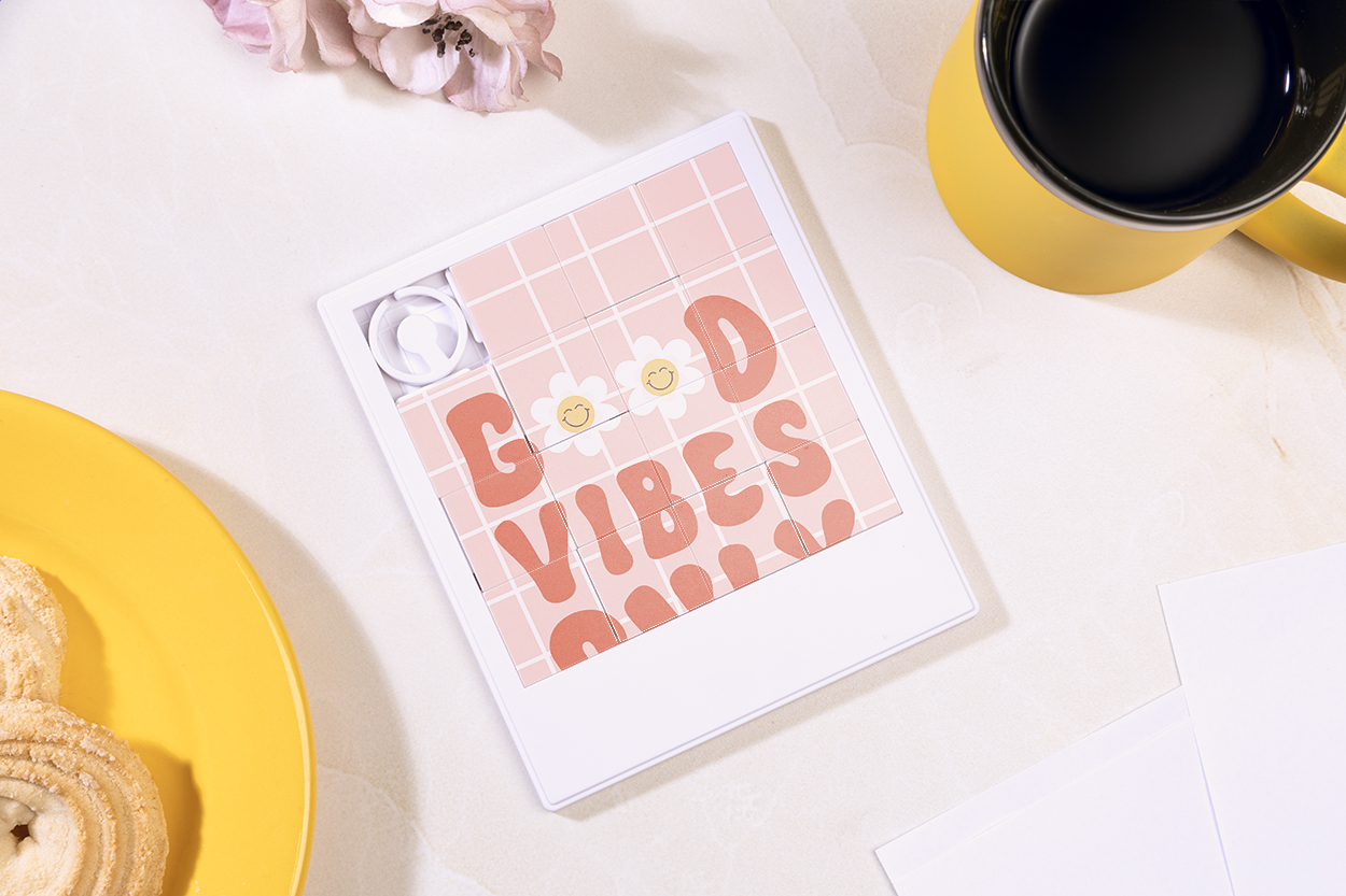 Dużych rozmiarów, przesuwana układanka wykonana z recyklingowanego tworzywa ABS z powierzchnią nadającą się do zadrukowania.