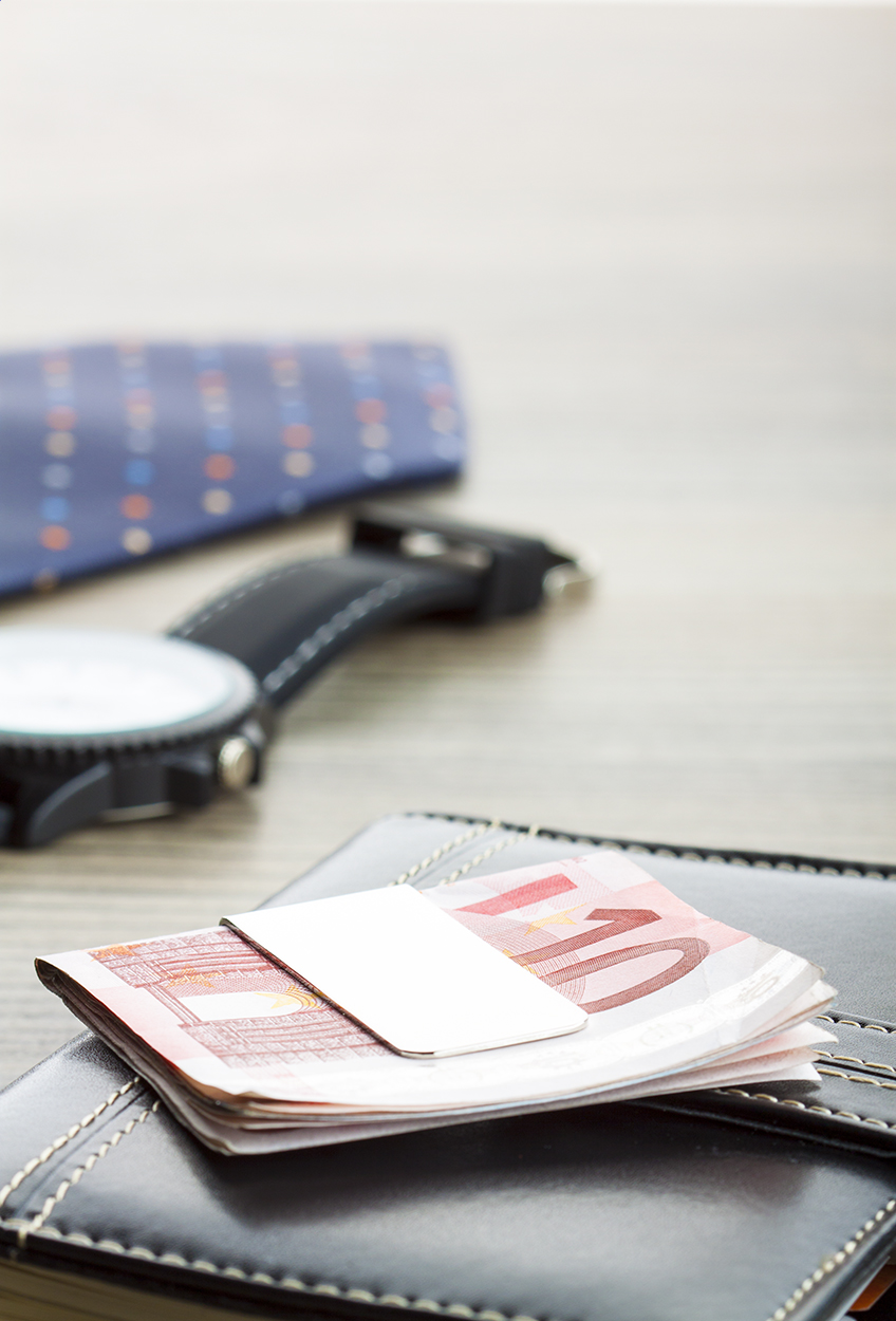 Spinacz do banknotów w ozdobnym pudełku.