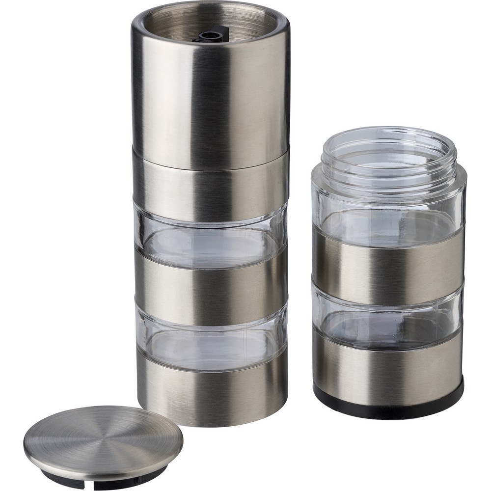 Młynek do soli i pieprzu ze stali nierdzewnej, 4 przegrody, ceramiczny mechanizm mielący