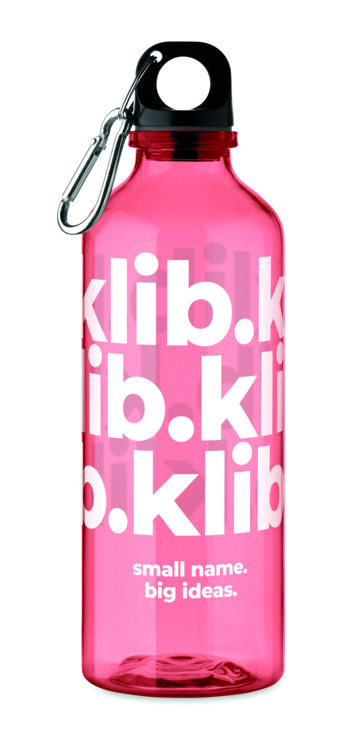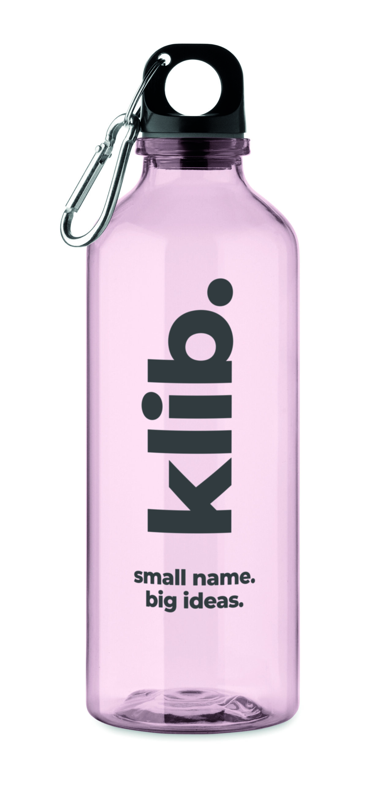 Butelka do picia z RPET z karabińczykiem. Pojemność: 500 ml.