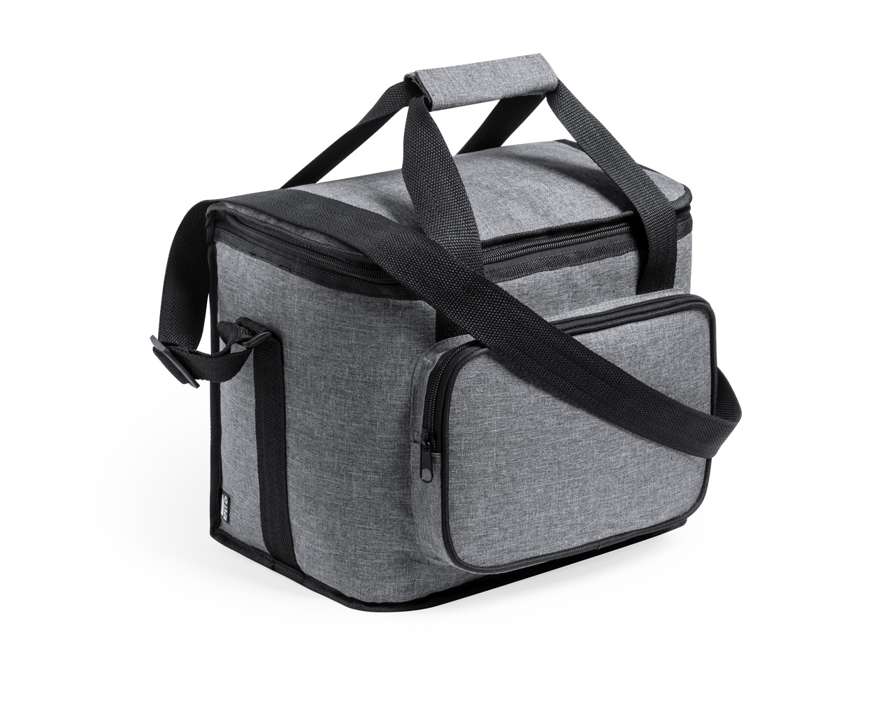 Torba termoizolacyjna RPET z wyściółką PEVA, przegródkami na suwak, uchwytami na rzep i regulowanym paskiem na ramię. Z metką RPET. Poliester 600D RPET.