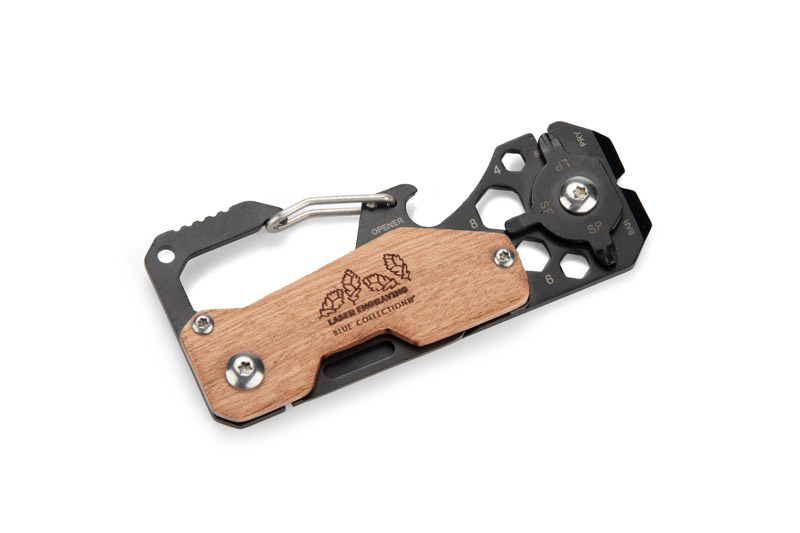 Narzędzie wielofunkcyjne FINLI z karabińczykiem to praktyczne rozwiązanie w każdej sytuacji. Wykonane z metalu z elementami drewnianymi, łączy funkcje miary/linijki, karabińczyka do przypięcia do paska lub plecaka, otwieracza do butelek, nożyka, wkrętaka płaskiego i krzyżowego, klucza łomowego, klucza do szprych oraz kluczy sześciokątnych. Dodatkowo, dzięki funkcji podważania, jest idealnym narzędziem do codziennego użytku oraz działań serwisowych.