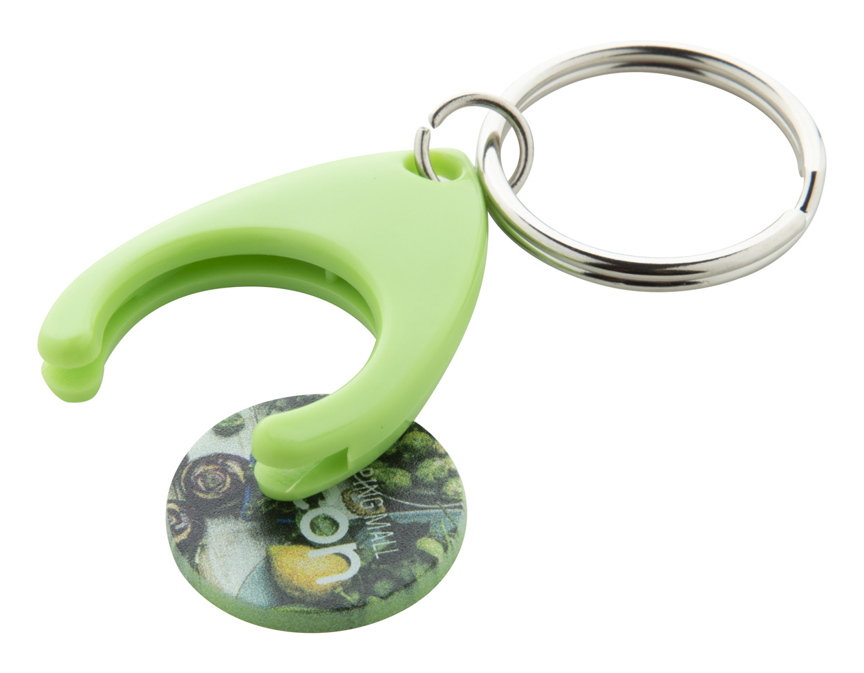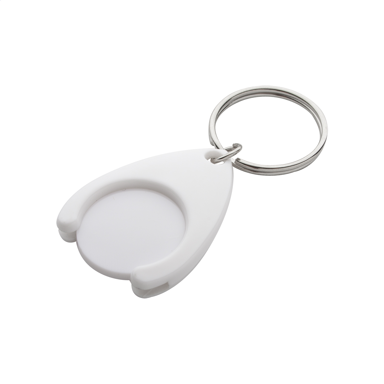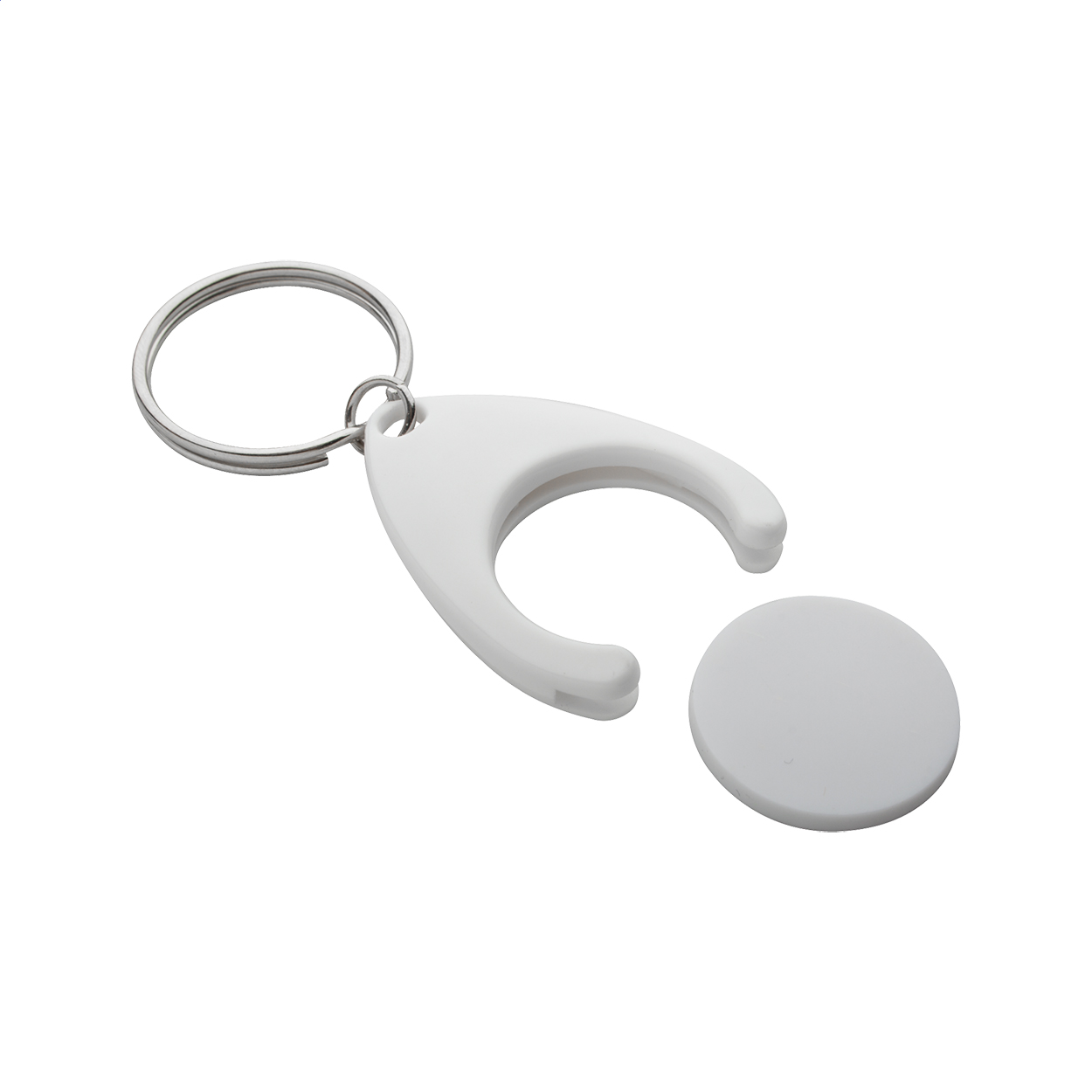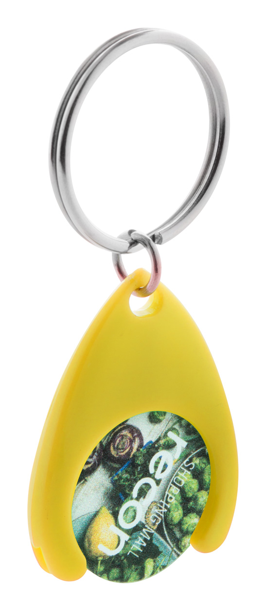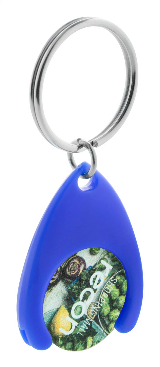 Plastikowy brelok z miejscem na monetę. Wielkość monety: ø24×2 mm.